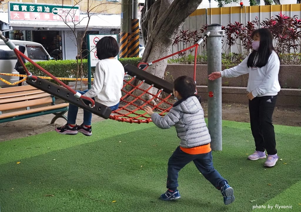 這一區雖然不大,但遊具種類很多,而且都是小朋友喜歡的設施,訓練攀爬、跳躍、平衡等動作,可以玩很久。