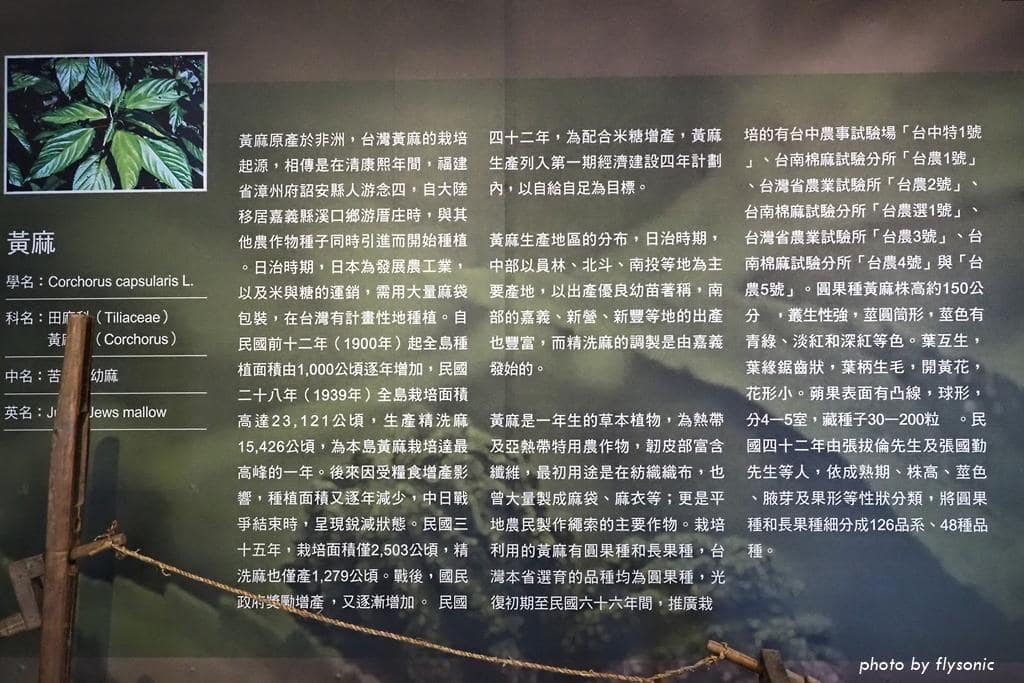 日治時期,日本為了米與糖的運銷,需用到大量的麻袋包裝,所以在台灣有計畫的種植,到了 1939 年,台中種植黃麻的面積多達二萬多公頃,達到最高峰。後來因為戰爭種植面積減少,光復後銳減到二千公頃,之後就漸漸衰微了。