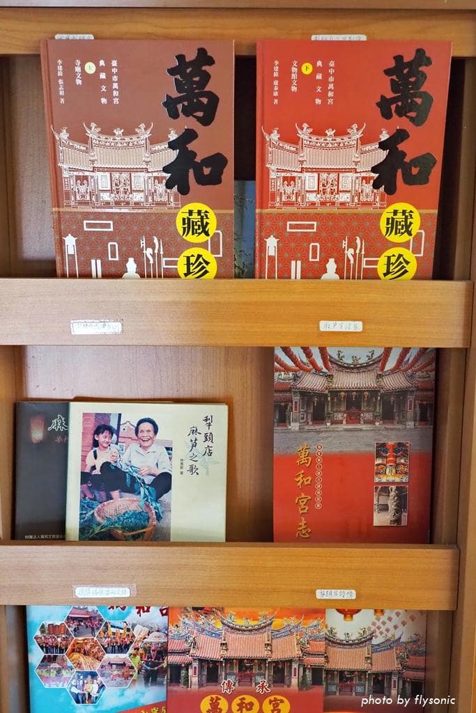 離開前,館員聽到我說對萬和宮有興趣,推薦我讀萬和宮出版的一系列書籍,尤其是最上面兩本「萬和藏珍」,詳細介紹萬和宮的歷史沿革及古物。她說這些書在萬和大樓三樓的圖書館可以借到。