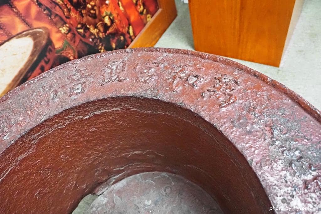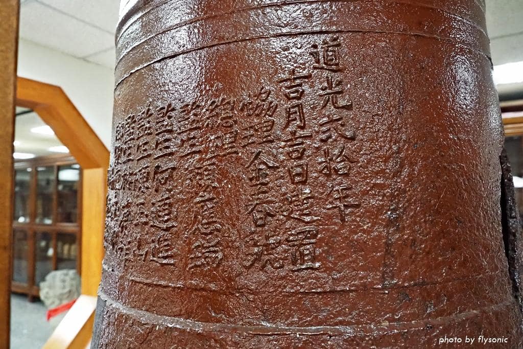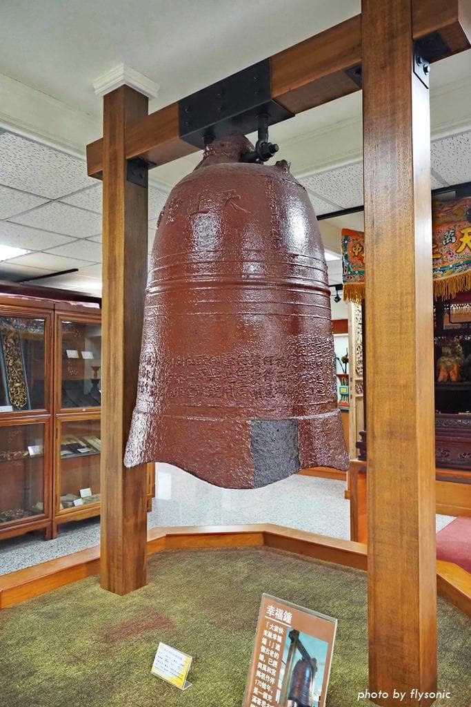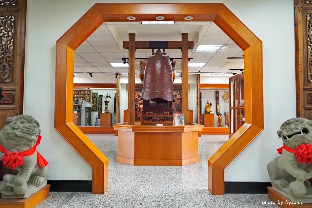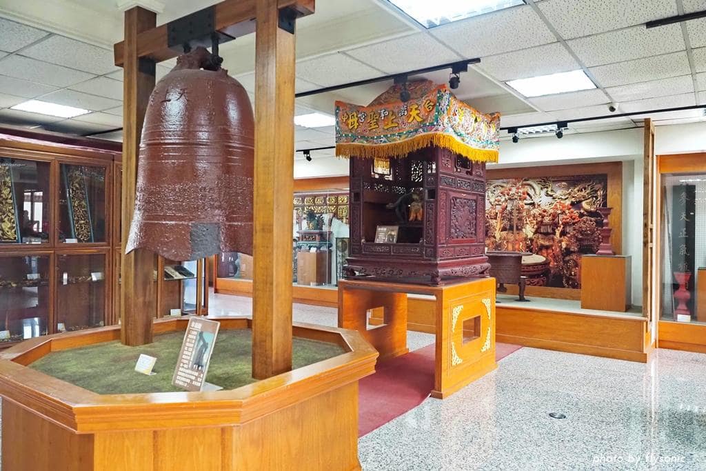 前方是清道光年間的鉎鐵鐘,是萬和宮文物館重要珍藏之一。