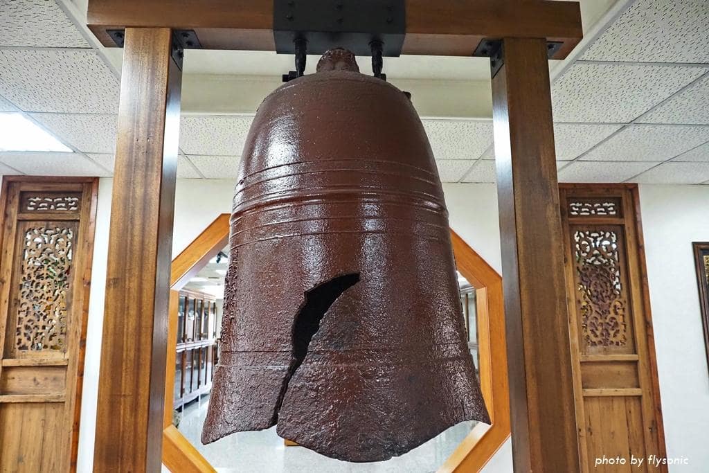 鉎鐵鐘後面的下半部有一道很深的裂痕,可能是鐵鐘曾經摔落地面導致損毀,所以後來廟方用昭和年間的銅鐘取代。
