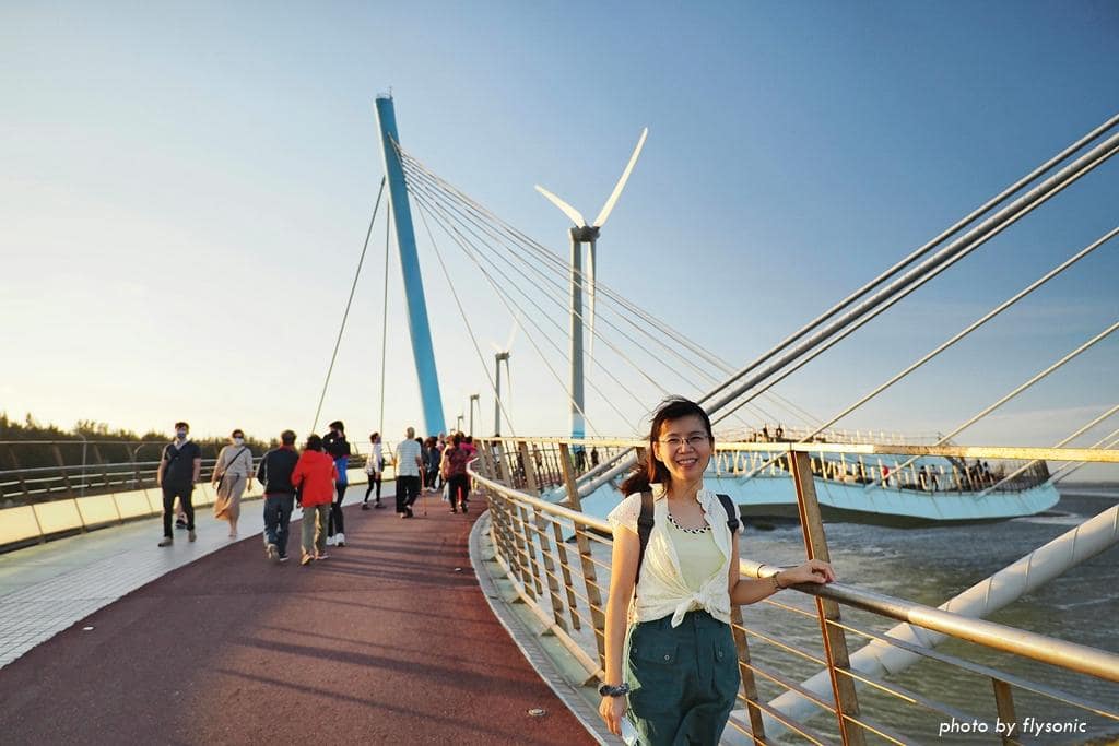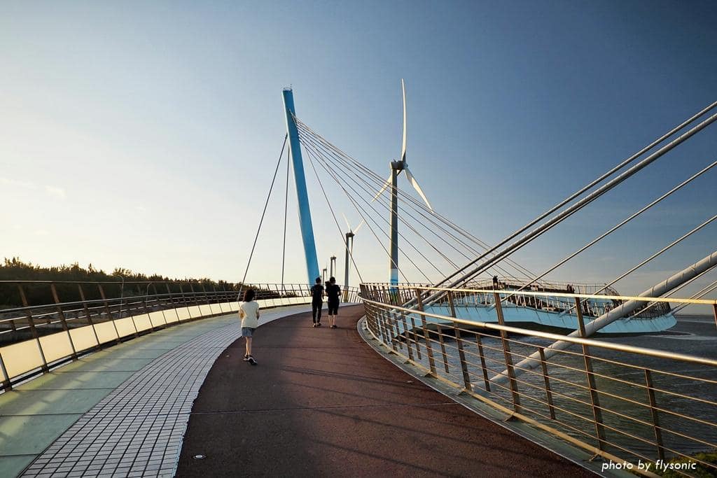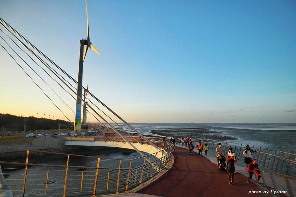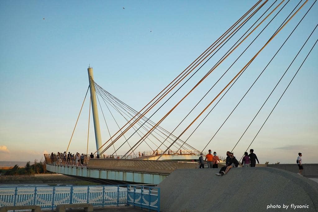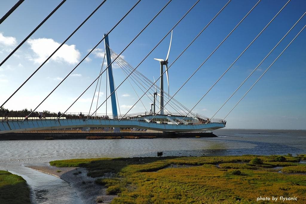 高美濕地景觀橋是耗資 2 億多,花費 2 年的時間打造出來的國內第一座雙塔雙弧線造型的斜張橋,獲得國家卓越建設金質獎。
