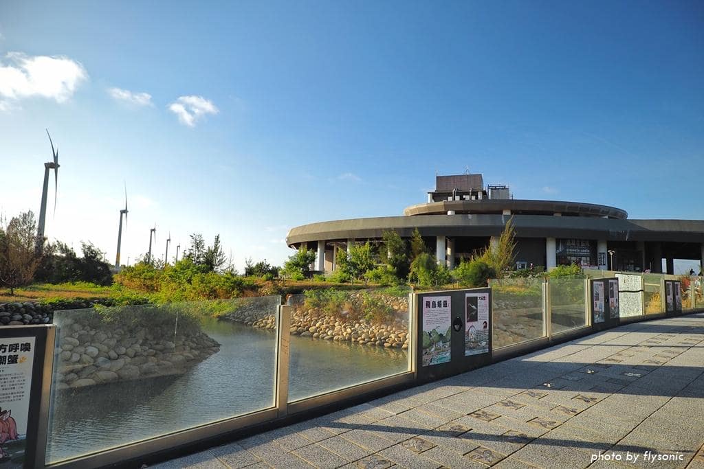 前方圓形建築就是高美濕地遊客中心。