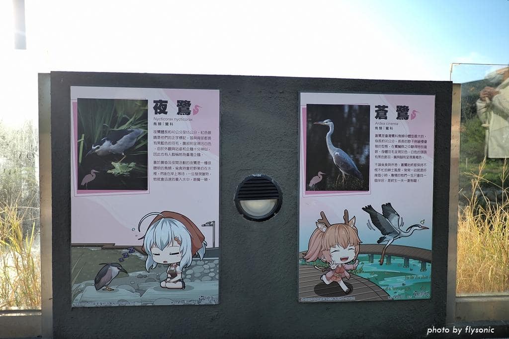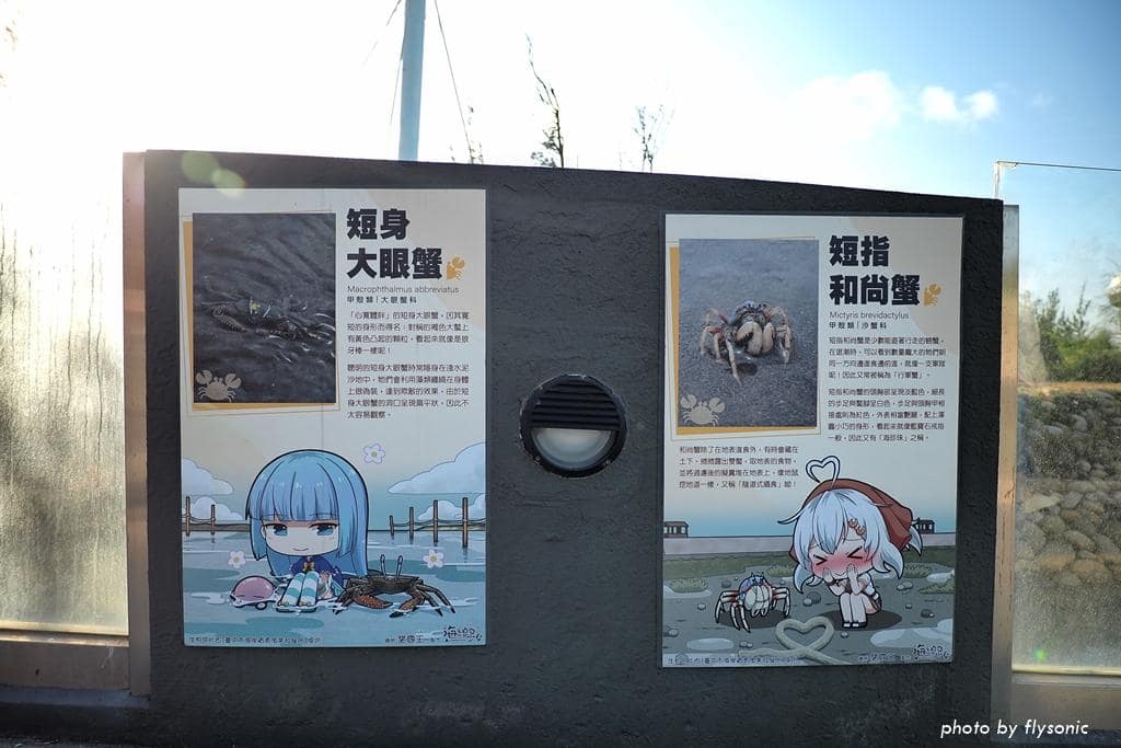 走道上的看板顯示高美濕地常見的小動物。