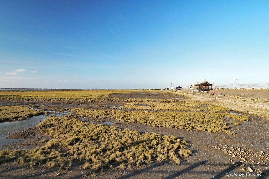 從遊客中心另一邊穿出去,過條馬路,沿著右邊的路走下去,最遠處的涼亭就是高美濕地木棧道。