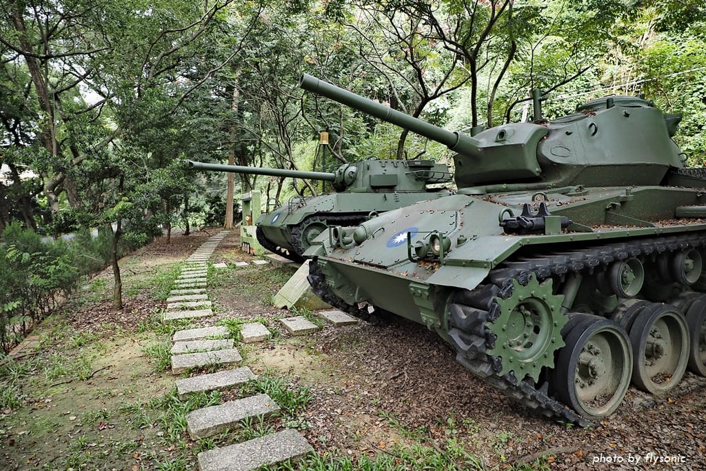 綠色隧道的尾端是「龍泉公園」,這裡有一座公廁,跟幾台退役的 M18 戰車。