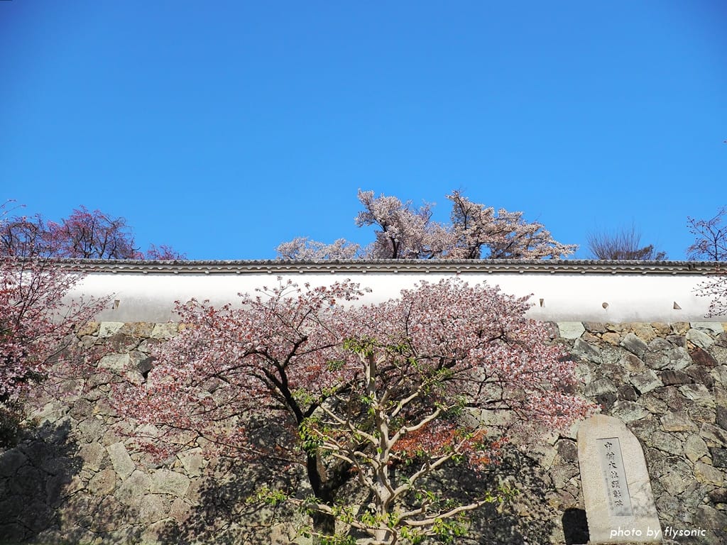 逛完內部後,從姬路城的北面出來,這邊的櫻花開得蠻不錯的,但還沒有達到滿開的程度。