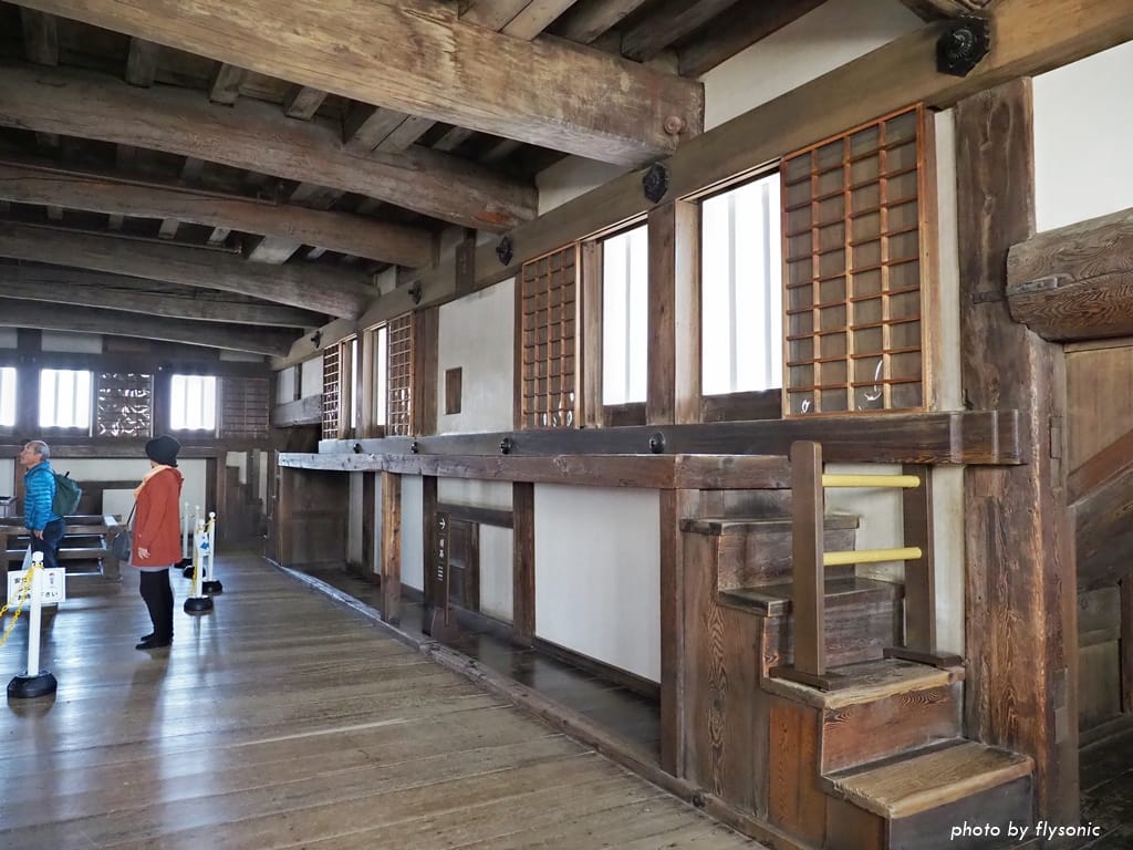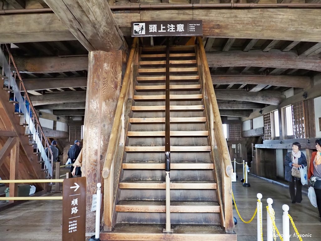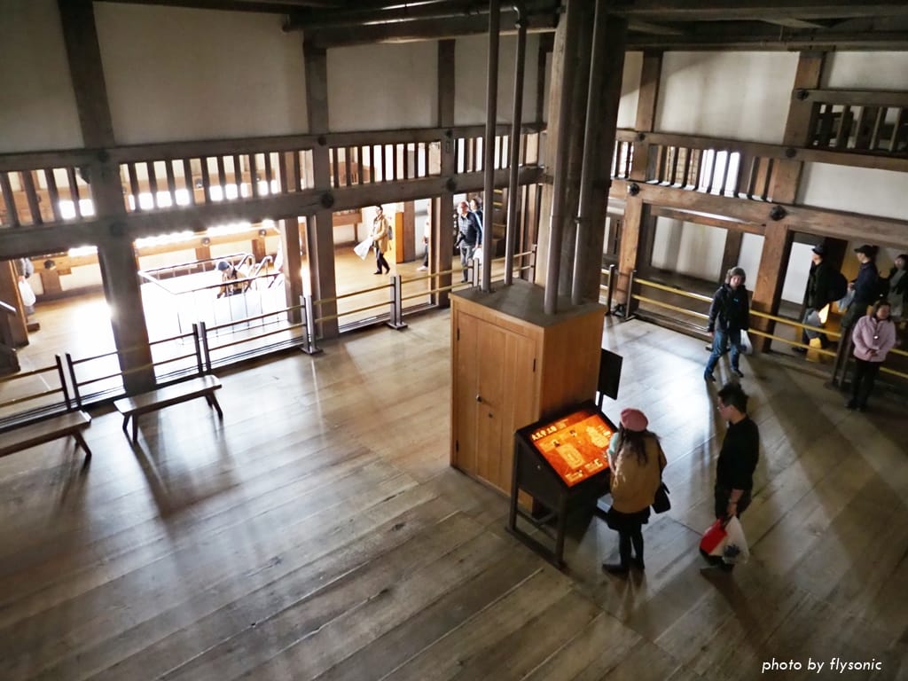 裡面沒有電梯也沒有空調,有的樓層展示戰國時期的武器,有的樓層展示姬路城築城的相關資料,越到上層,樓梯就越狹窄。