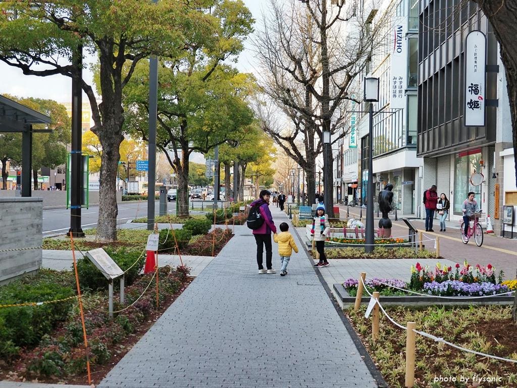 從飯店走筆直的「大手前通り」到姬路城,大約要走 20 分鐘,寬度達 50 公尺的大道走起來非常舒服。