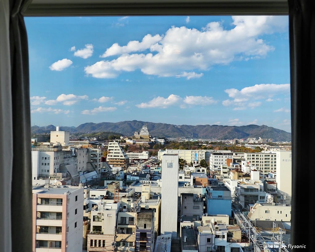 從房間窗戶就可以看到美麗的姬路城,到了晚上,姬路城還會點燈,非常特別。