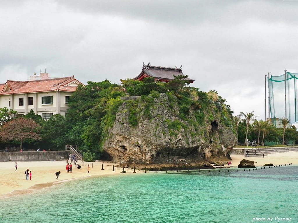 波上宮旁邊的波之上海灘是那霸市區唯一的海灘。雖然景觀沒有很好,會被前面的橋樑遮到,但是水質不錯,適合帶小孩來玩沙玩水。而且,從海灘的公園遠望波上宮,會發現它是建在珊瑚礁岩上的神社,非常奇特。