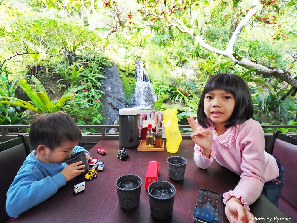 在超過百年的古民宅內,滿眼綠意及瀑布流水聲陪伴下,悠閒的吃著傳統琉球風味料理,感覺更道地了。