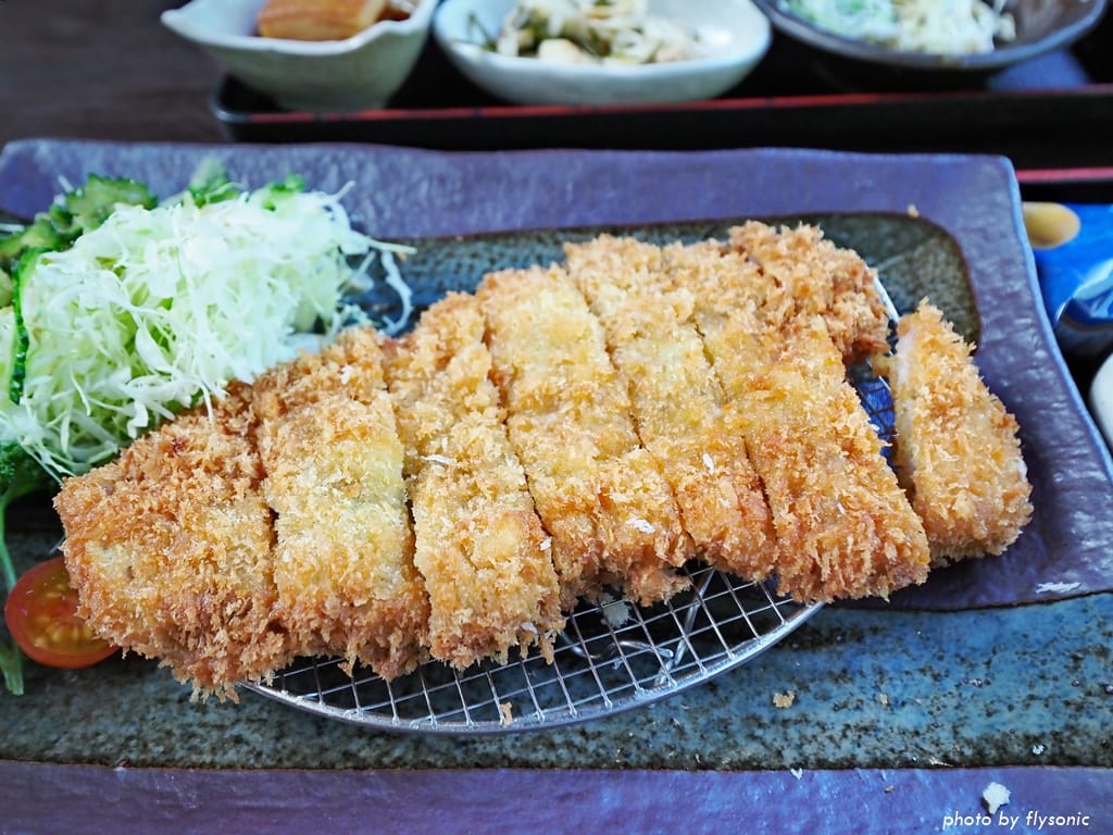 金黃色的豬排端上來,一看就知道好吃。果然外皮炸得酥脆,裡面的肉排鮮嫩多汁,讓人食指大動!