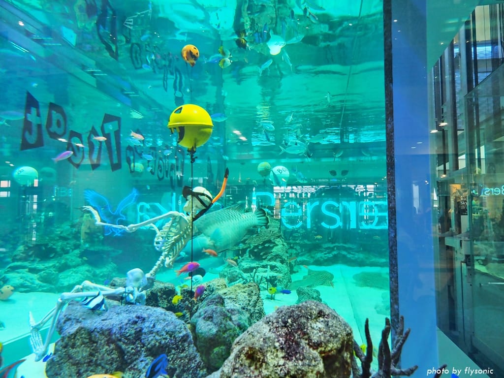 一樓入口處有個大水族箱,因為人很多,我為了閃人,沒想到拍成這樣。