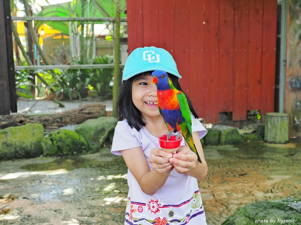 水果樂園最大的特色,是有一個小型的鳥園,這裡有好幾隻彩色的鸚鵡,可以跟牠們互動,餵食他們。