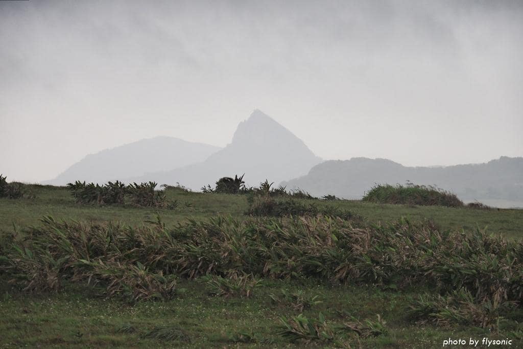 台 26 線佳鵝公路上,陰雨朦朧的大尖山。