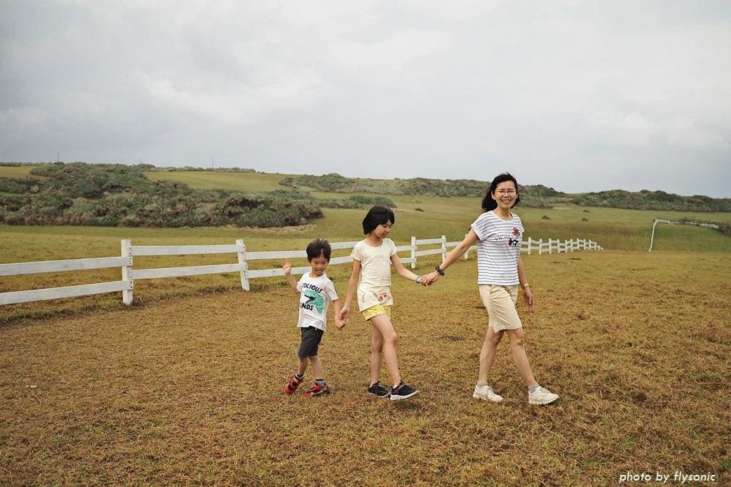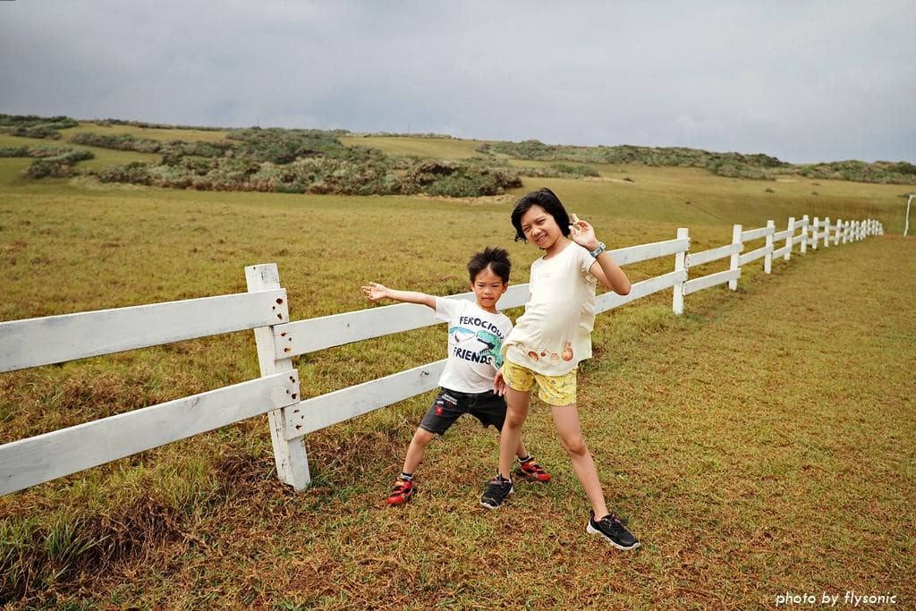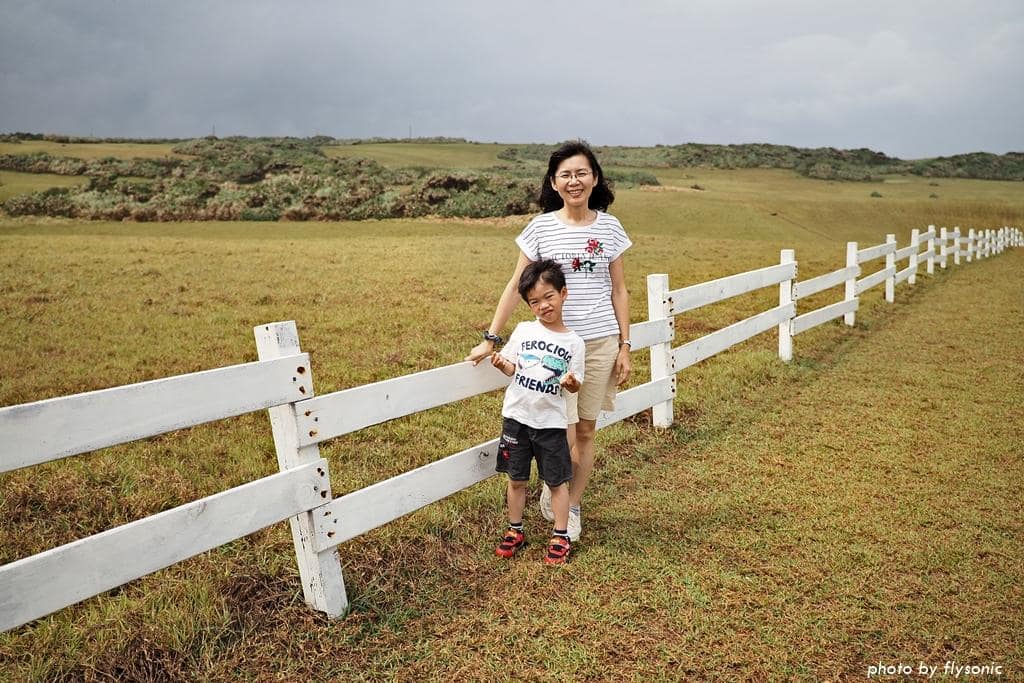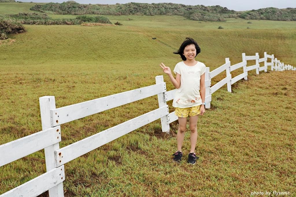 白色欄杆一直延伸到最後面。相較於晴天大太陽下的水蛙窟草原,陰雨天的草原特別濕潤柔美。