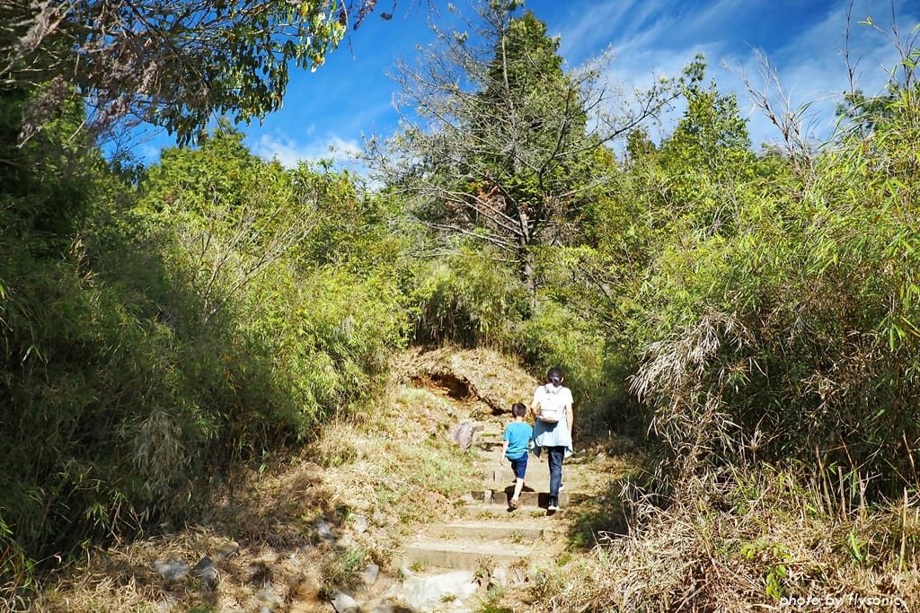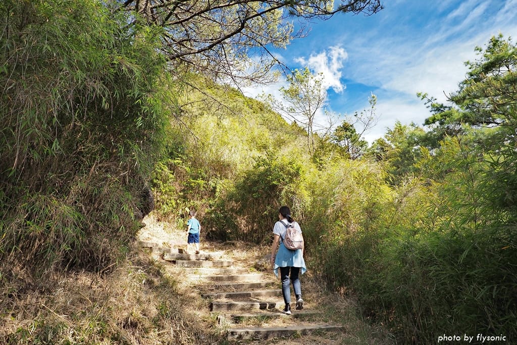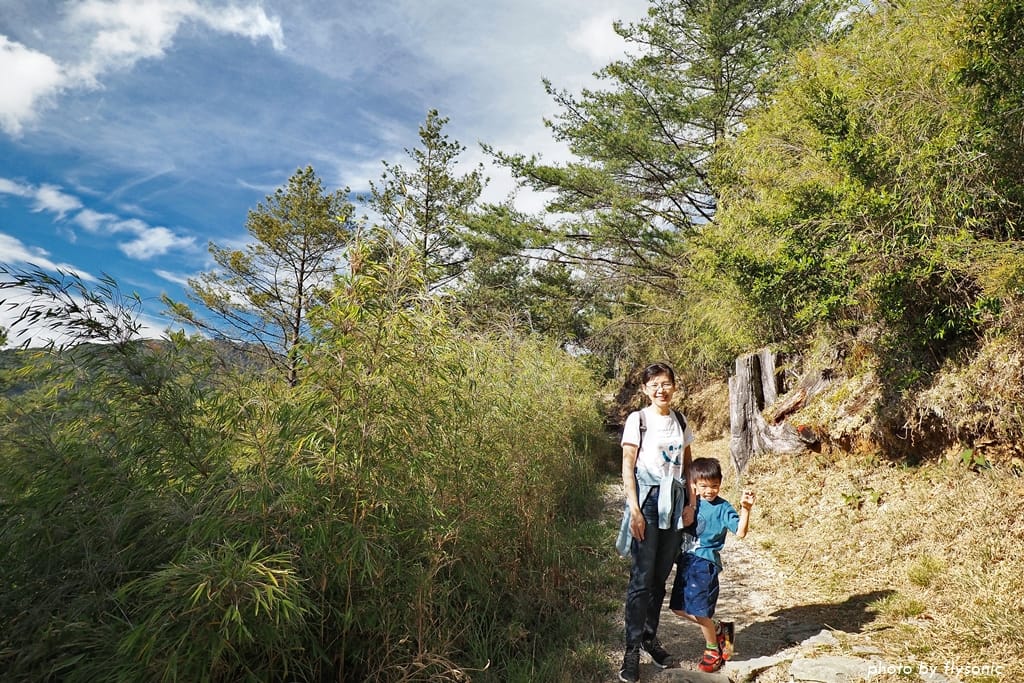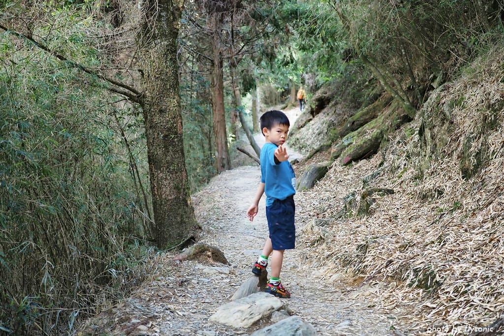 兒子剛開始雖然有抱怨,但開始爬坡之後,他卻賣力往上走,體能一點都不輸大人。他的速度非常快,我幾乎追不上他,被拋在後頭吁吁喘氣,不時看著他回頭跟我打氣加油(這小子真行啊!)