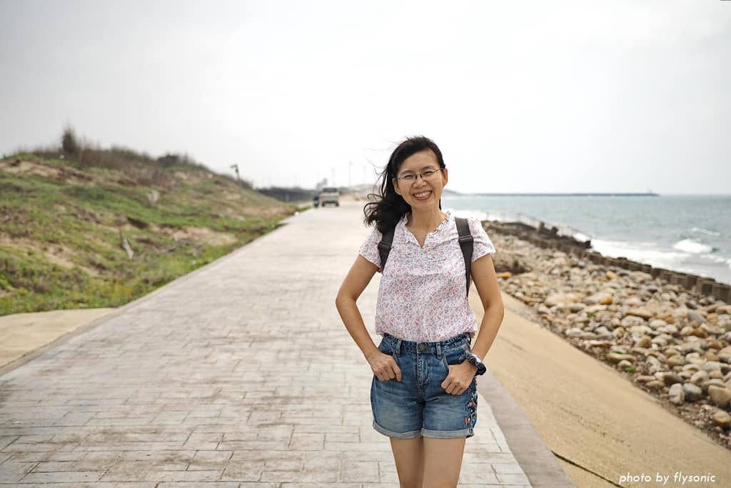 海岸線非常長,遠處有風力發電的大風車,不過海風強勁,太陽很大,我們沒有下去玩水。