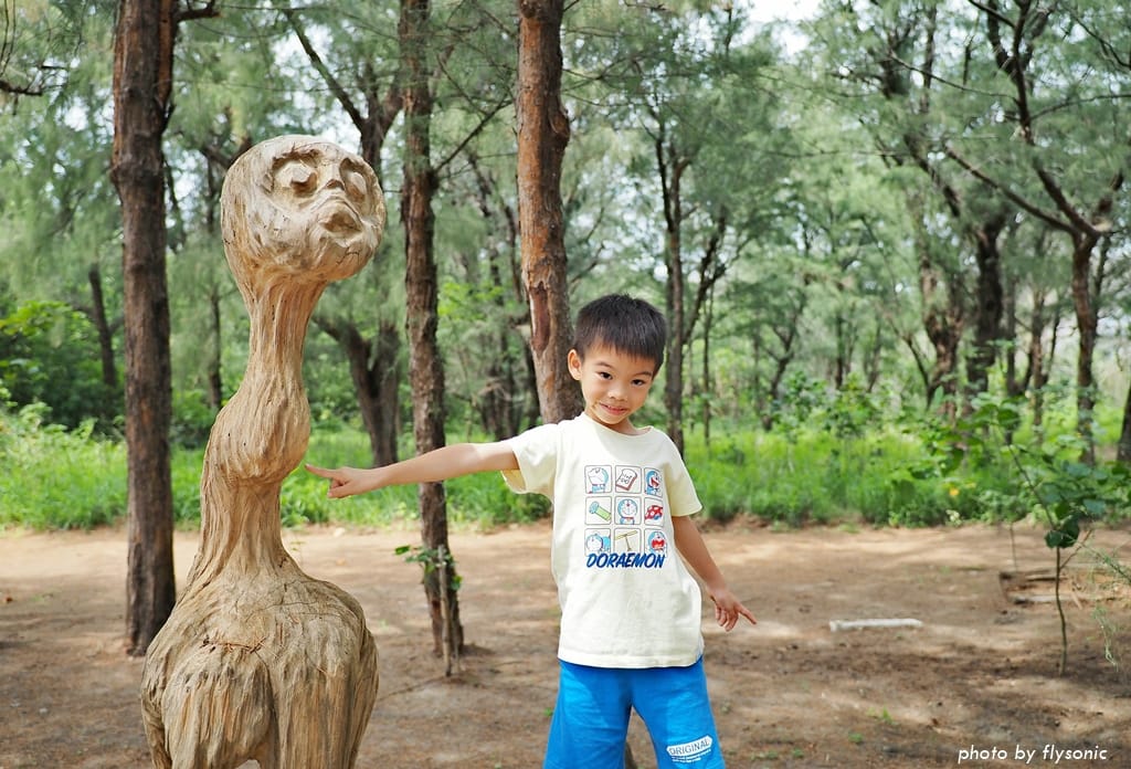 兒子居然懂得欣賞木雕作品,他很喜歡這個外星人。