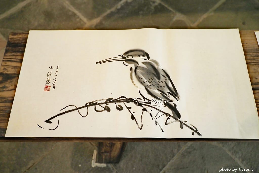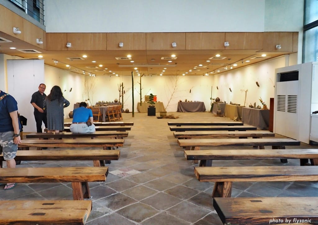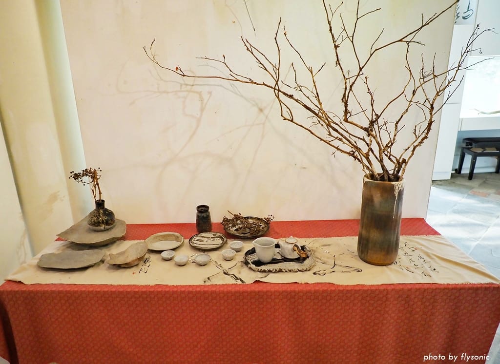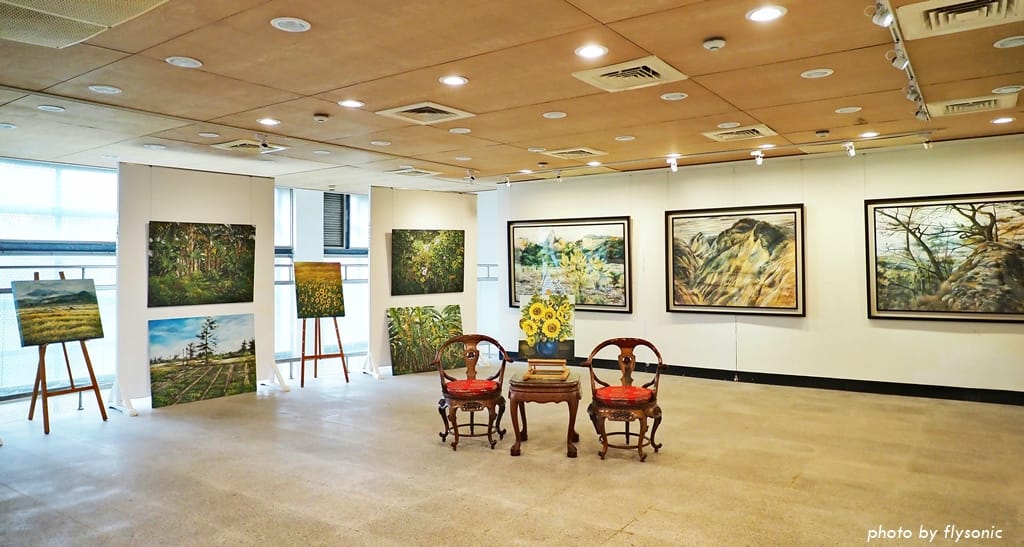 一樓空間寬廣,目前展出水墨畫、書法、陶藝等創作。