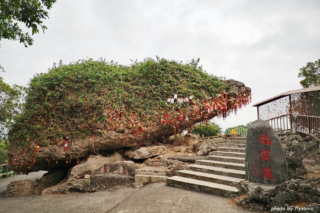 福靈龜是一顆貌似烏龜的珊瑚礁岩,在關山百年古廟「高山巖福德宮」附近。