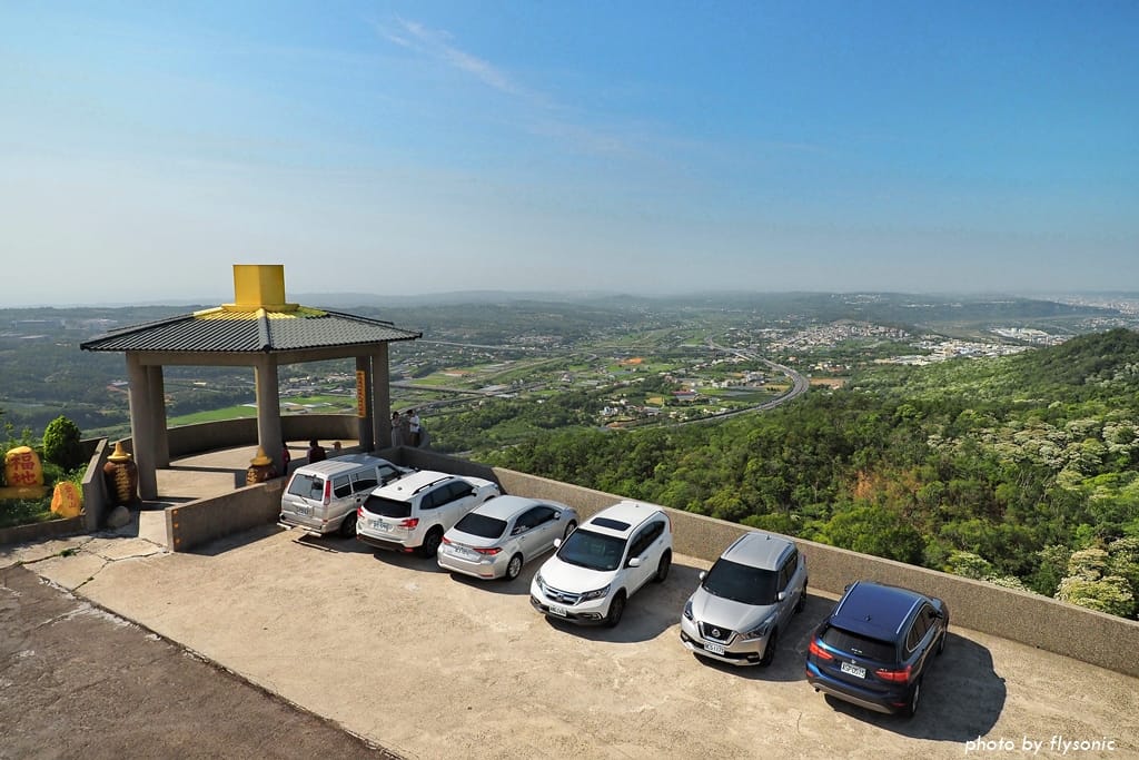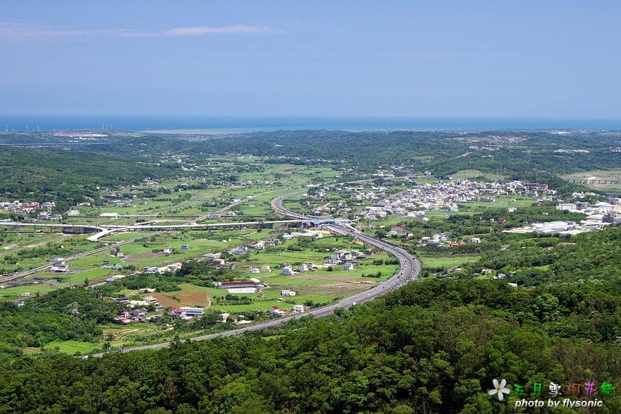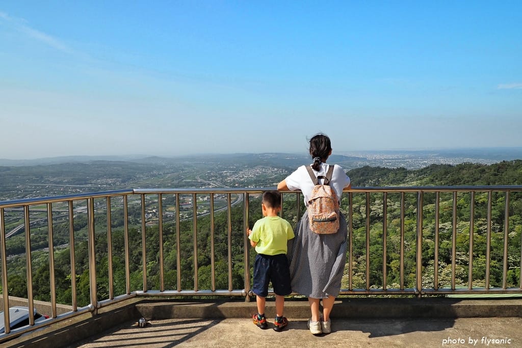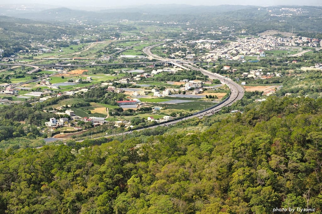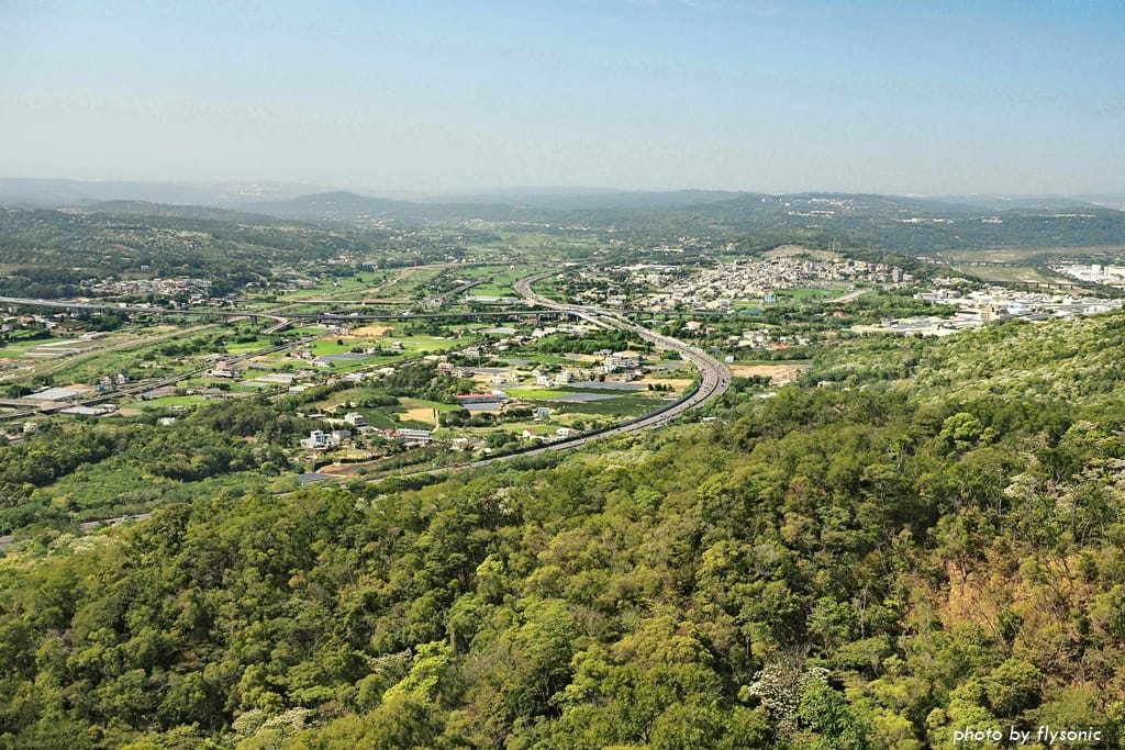 站在觀景台涼亭,可以俯瞰國道一號高速公路、銅鑼工業園區、交流道等景觀。