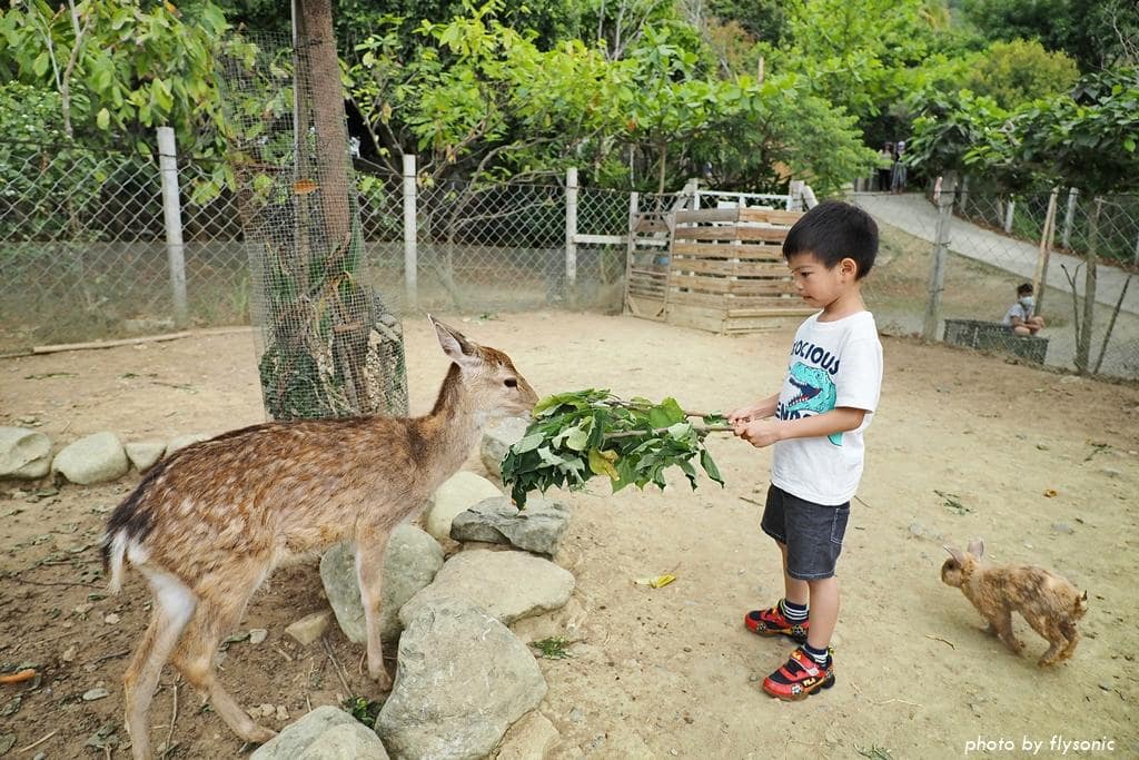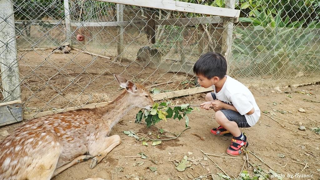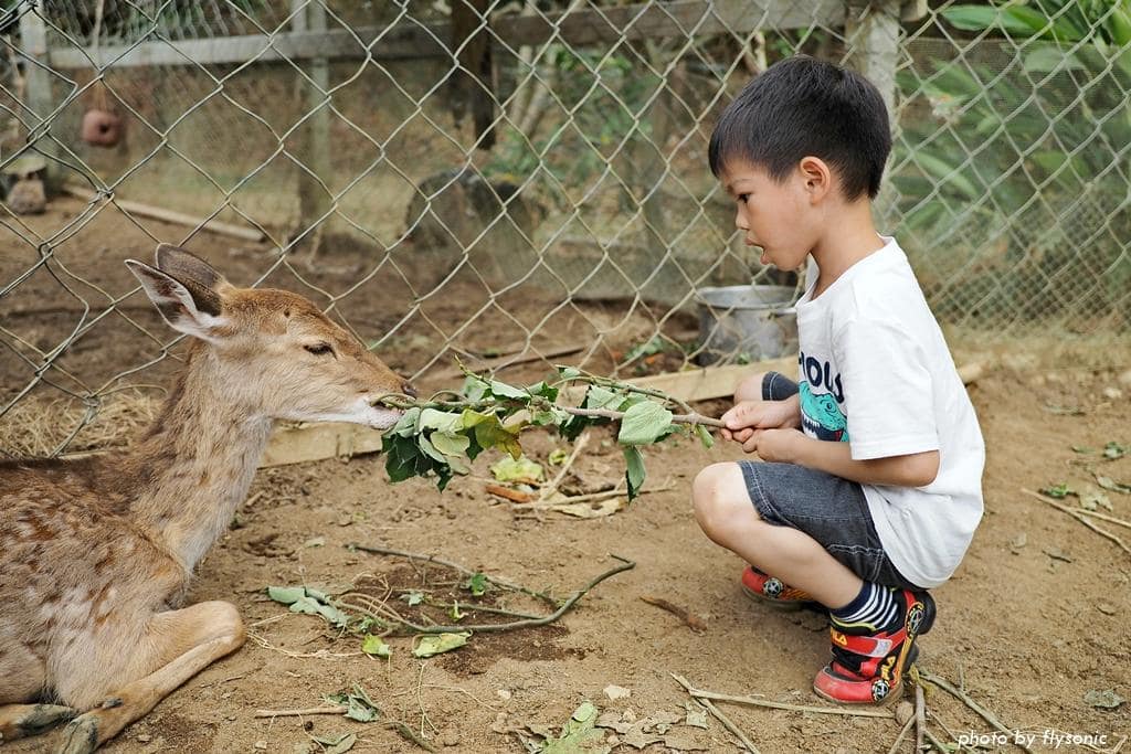 兒子餵牠們的時候一點也不害怕,他說羊咩咩比較兇,梅花鹿很可愛。女兒餵一下梅花鹿之後,就跑去餵兔子,她比較喜歡餵兔子。