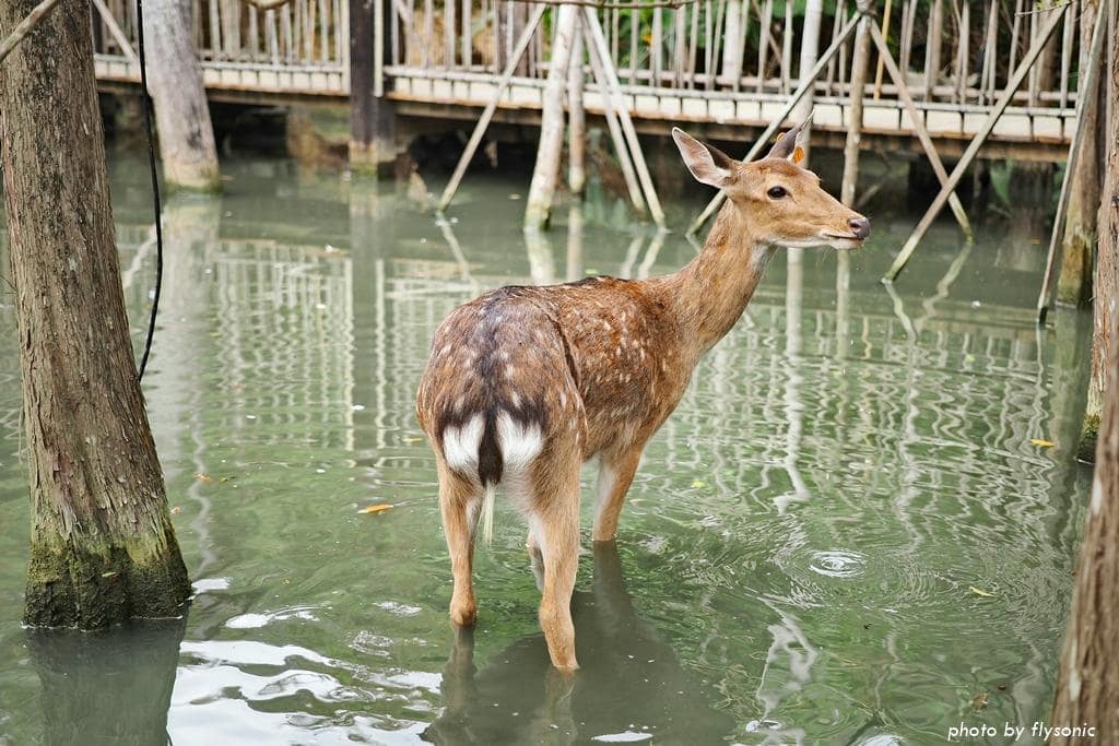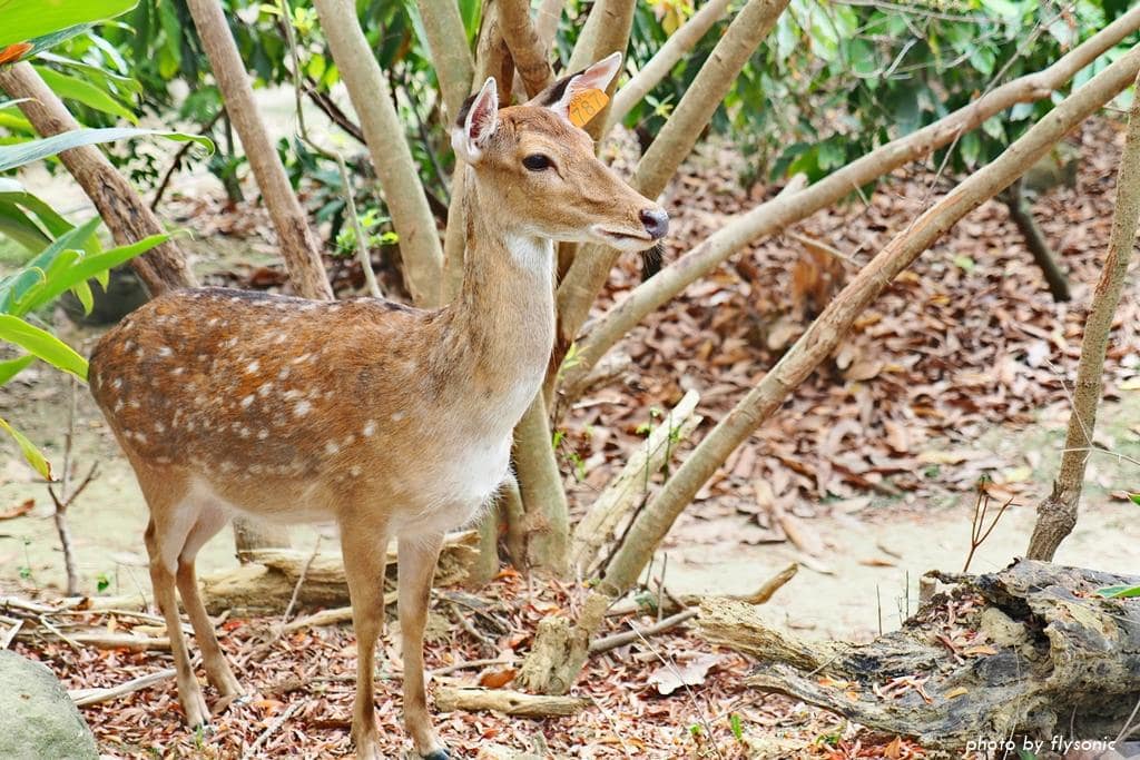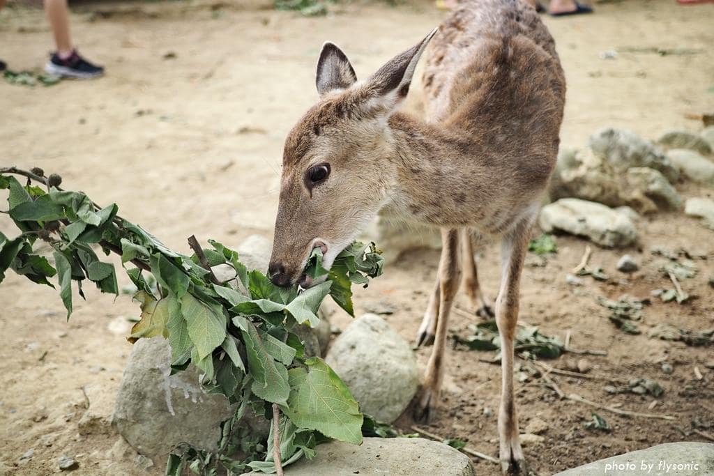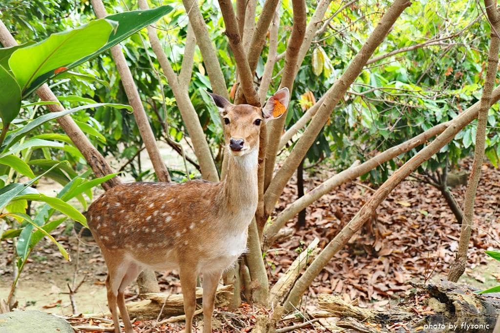 台灣梅花鹿長得就像卡通裡的小鹿斑比,俏皮又惹人憐愛。牠們喜歡吃樹葉,名稱我忘了是什麼。樹枝上面還有一粒一粒的果子,小鹿會去把它咬下來吃。