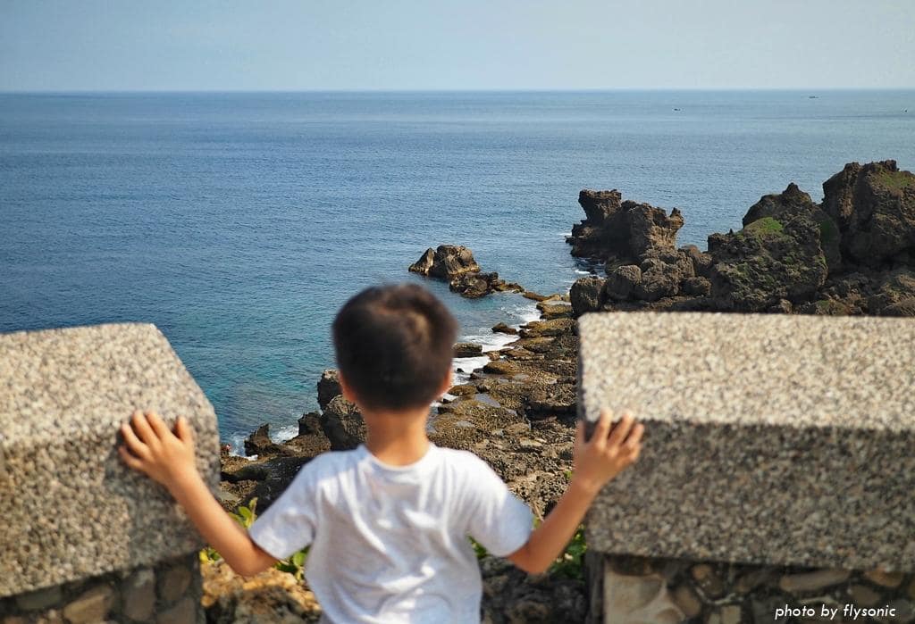 在觀景台上看出去,一邊是貓岩,另一邊就是裙礁海岸,而中間就是臺灣海峽與巴士海峽的分界點。
