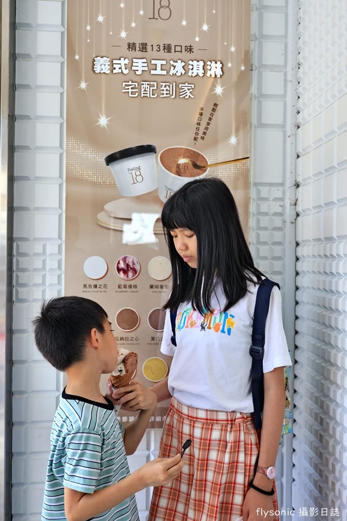 我們在火雞肉飯飽餐一頓後,兒子吵著要吃 18 度 C 的冰淇淋,他居然還記得那間店。