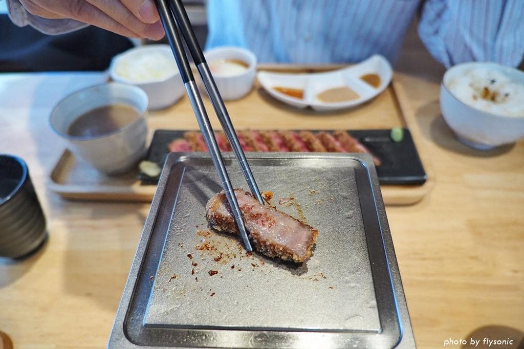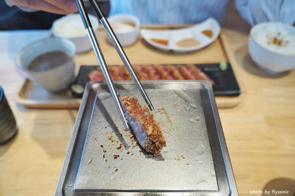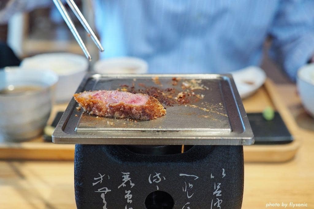 牛かつ的牛肉來自日本,選用原塊牛肉裹粉炸至三分熟,再由客人桌上烤到自己要的熟度食用。