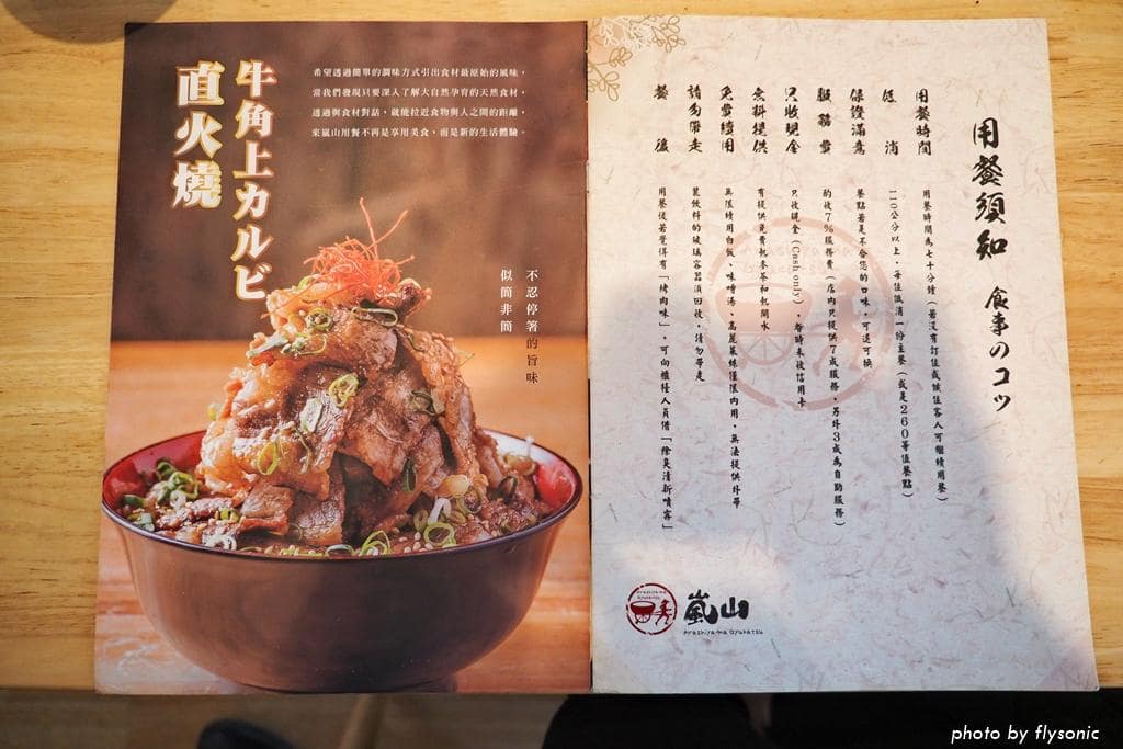 菜單註明用餐時間限制 70 分鐘,服務費收 7%,只收現金,不能刷卡或電子支付,身高滿 110 的兒童要低消點一份主餐。