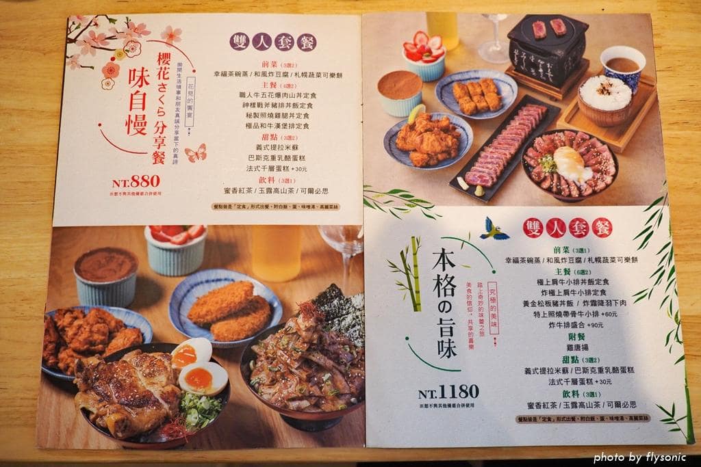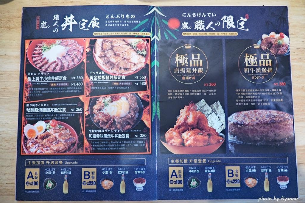 我點上圖菜單左下角的「炸霜降羽下肉」,老婆點一份右下角的「神樣戰斧豬排丼飯定食」。