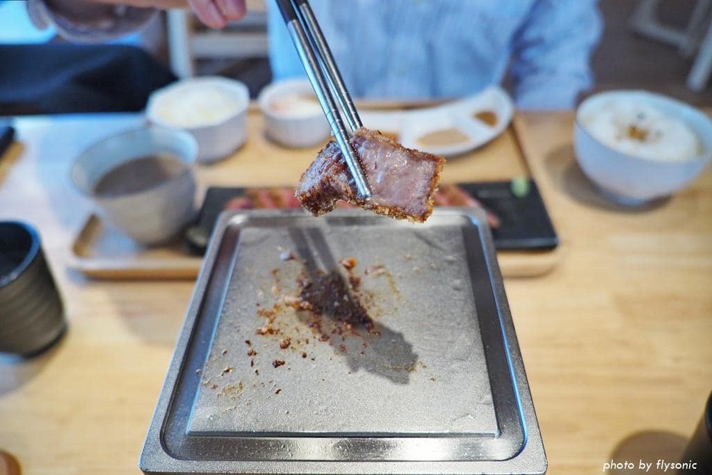 霜降羽下肉是牛的肩胛肉,有羽毛般的細緻油花,所以稱作羽下肉。肉片滋滋作響,散發出烤肉的香氣。
