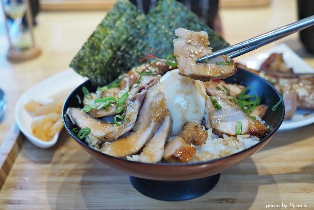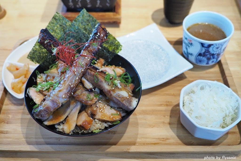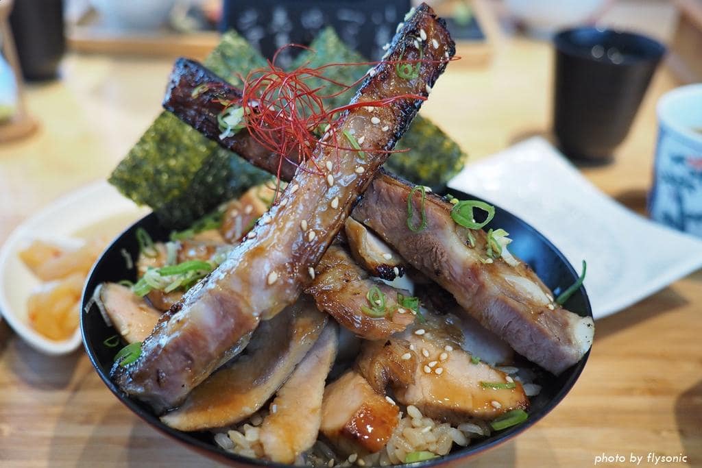 把豬肉與骨頭分離,一片片切好擺盤,方便食用,肉質軟嫩彈牙,不會乾柴,丼飯的飯粒口感分明,配上烤肉的醬汁,好吃得不得了。肉片中間還藏了一顆溏心蛋,搭配肉片及米飯,吃起來更滑順豐富。