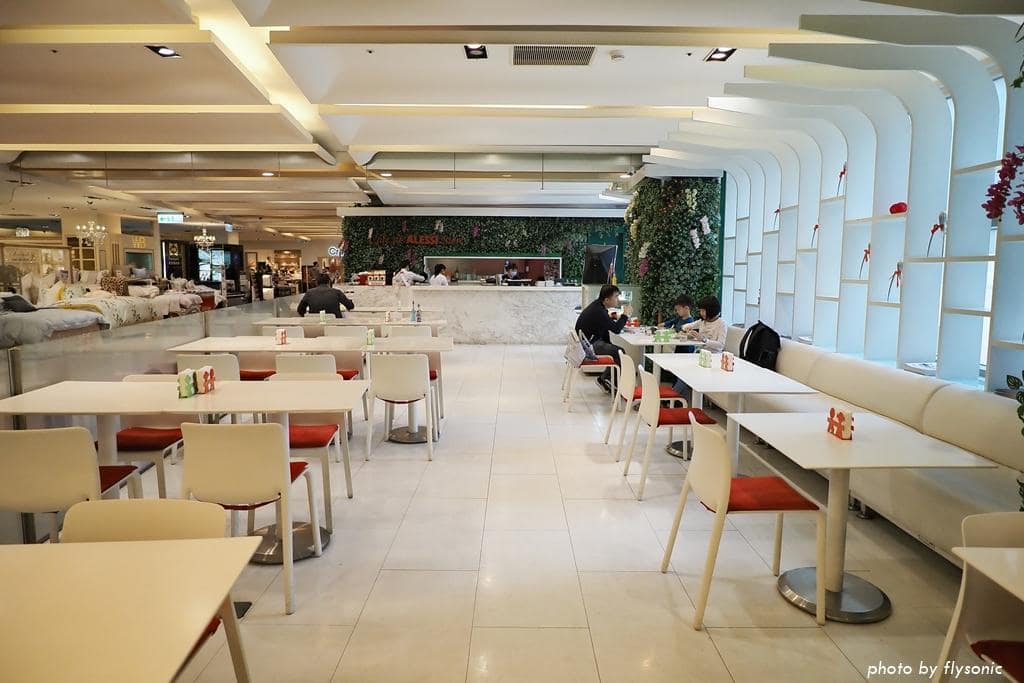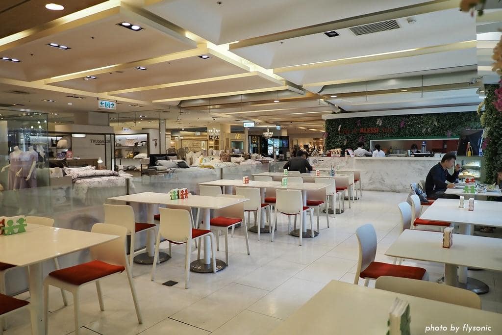 Alessi 是義大利有名的家用品設計製造商,出產許多具有設計感又實用的用品。Alessi Cafe 的餐點有一定的水準,美味可口。一道燉飯、麵類或披薩的主餐大約 300 多元,若再搭配湯品或飲料、甜點,價位上比較高一些,但是用餐環境相當舒服,又可以優雅的在百貨公司裡逛街。