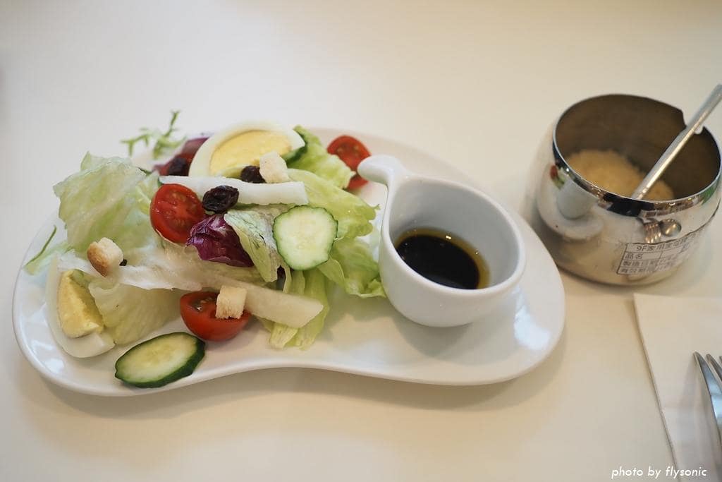 沙拉菜很新鮮清脆,搭配義式油醋醬及起司粉,我不知不覺得就把它全部吃下肚了,後來被老婆怪說,為什麼都沒有留一點給她?(因為她逛太久了,我以為她不想吃啊!)