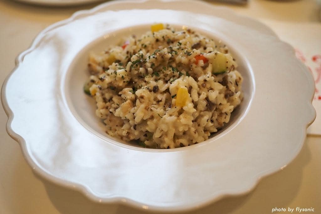 我點了三個燉飯,其中一個搭配 200 元套餐(湯品、沙拉、飲料)。等待餐點上來的時候,他們兩個看 youtube,老婆去逛旁邊的 Crate & Barrel 美式風格居家用品店。老婆每次來這裡吃飯都會利用時間逛街。