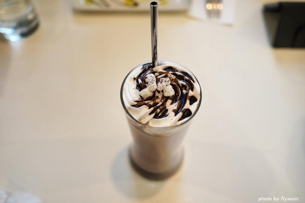 才剛喝完巧克力,服務生又端上這杯冰沙,說要招待我喝的,讓我受寵若驚。其實,這杯飲料也是未來的菜單飲品之一,攝影師拍完照送給我喝。