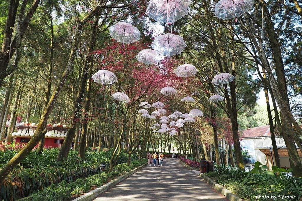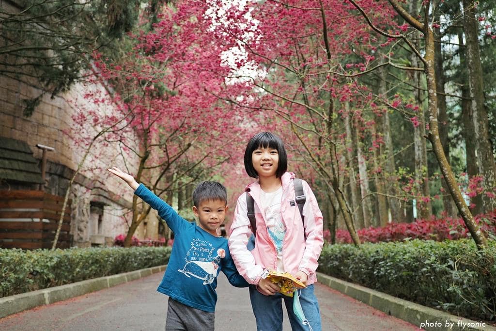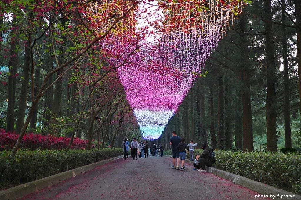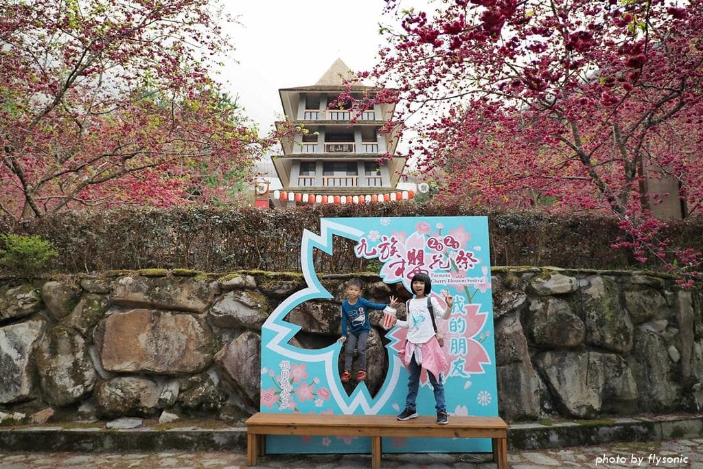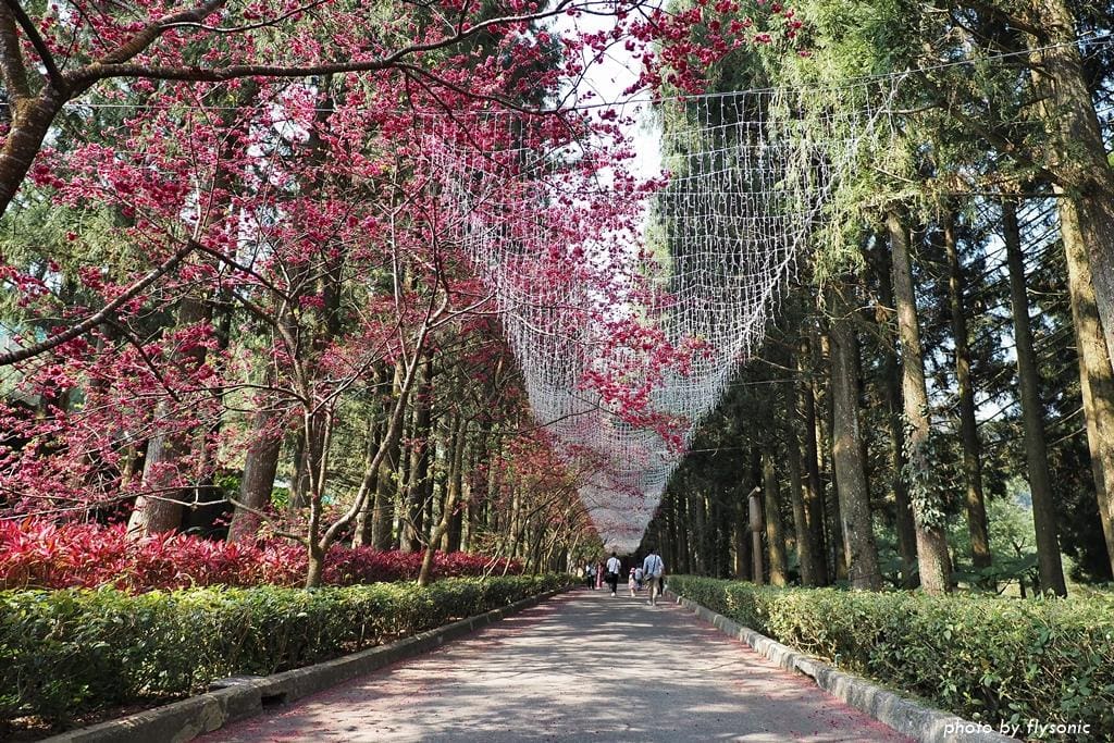我們先到園區的櫻花大道看富士櫻、野餐,然後去阿拉丁廣場玩跳跳蛙,再到西班牙海岸參觀,之後搭乘九族纜車,最後從觀山樓一路走回來,直到天黑後才取車回家。
