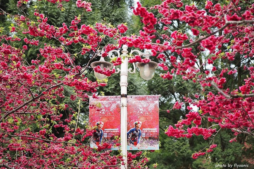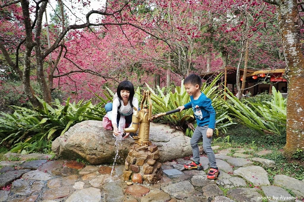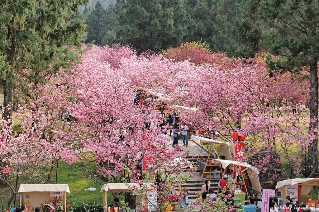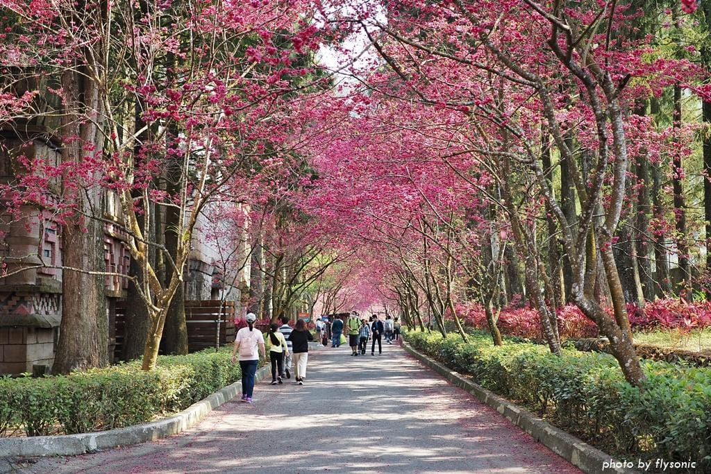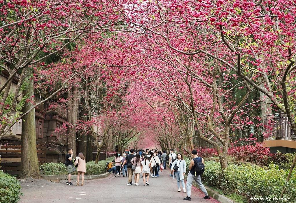 我們先到園區的櫻花大道看富士櫻、野餐,然後去阿拉丁廣場玩跳跳蛙,再到西班牙海岸參觀,之後搭乘九族纜車,最後從觀山樓一路走回來,直到天黑後才取車回家。