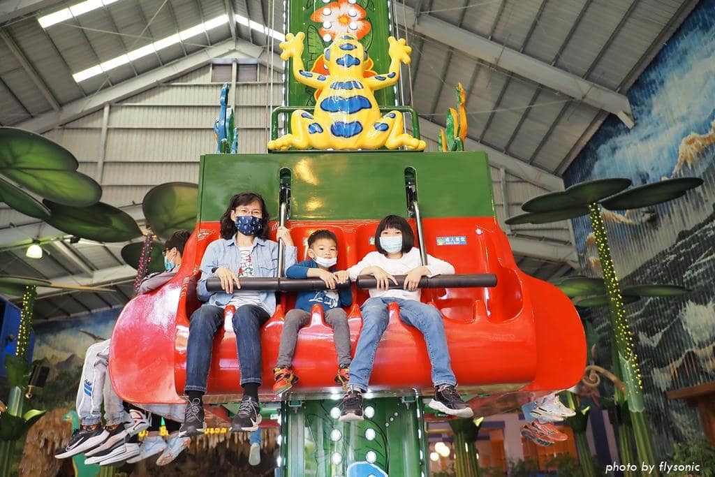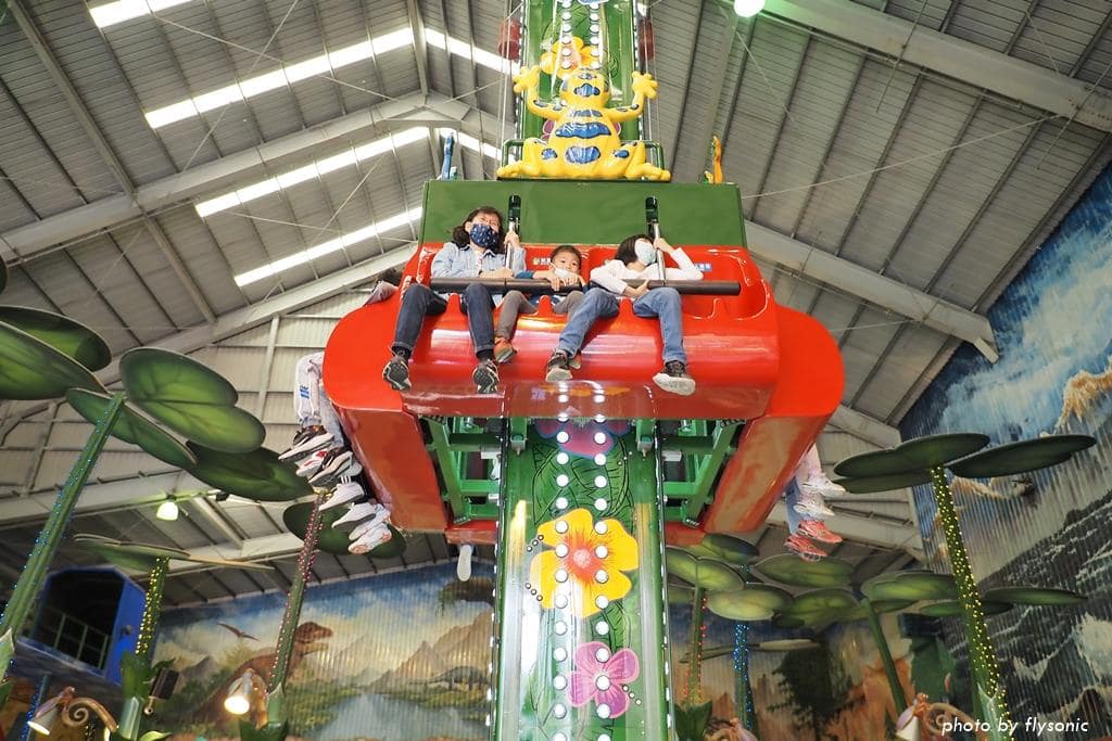 跳跳蛙其實就是小孩版的大怒神,高度不算太高,從高處掉下來之後還會上下擺動,所以叫作「跳跳蛙」。這項遊樂設施雖然位在最裡面,人氣還蠻旺的,身高只要達到 100 公分就可以搭乘,現場有許多小小孩也來挑戰。