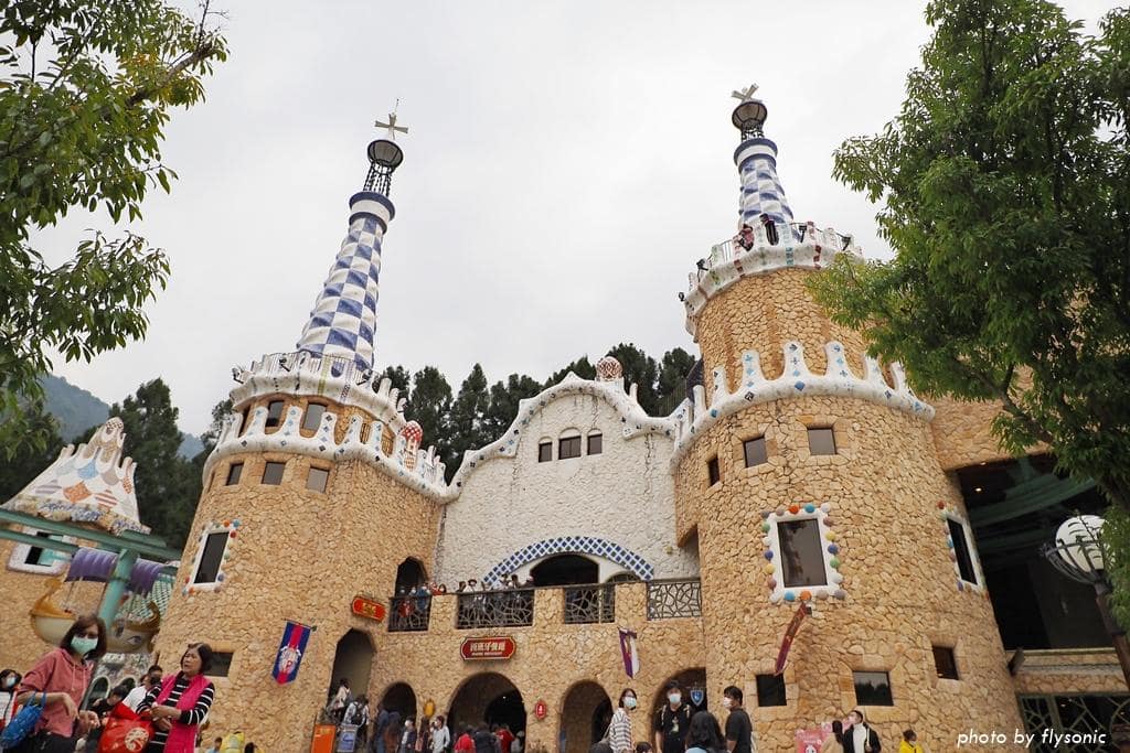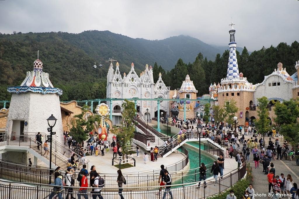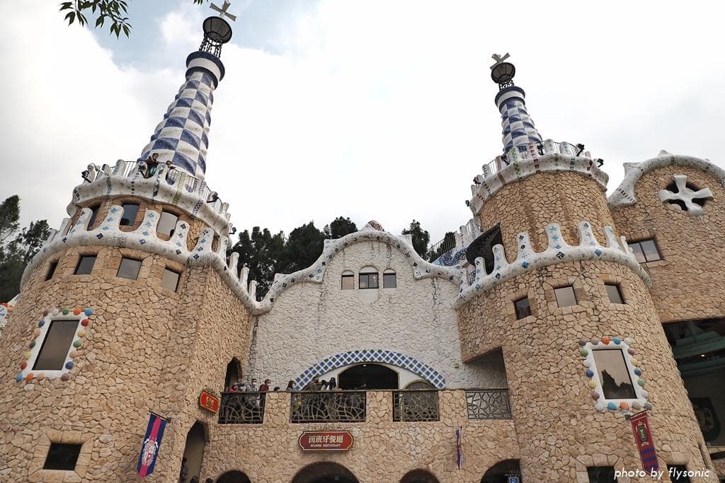 這一區的建築仿造西班牙建築大師高第的作品風格,特色就是幾乎找不到直線,多是採用彎曲的線條來表現。這些建築活潑有趣,讓人感受到歡樂的氣氛。這裡的遊樂設施人氣非常旺,排隊的人潮也最多。