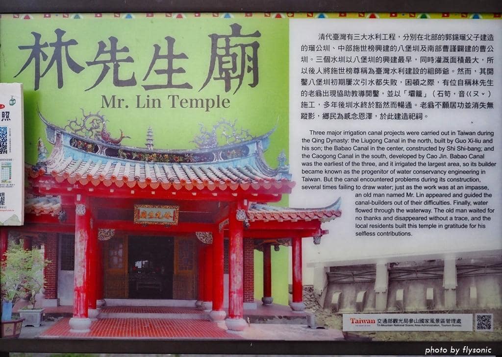 林先生與八堡圳的開鑿大有關係,要了解八堡圳的由來,絕不能漏掉林先生廟。林先生廟也在大馬路旁邊,一不小心可能會錯過,還好入口處有一座牌樓。