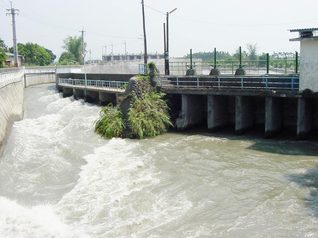 林先生廟的正對面,就是八堡二圳取水口。取水口的水量驚人,站在圳旁就聽到轟隆隆的水聲。