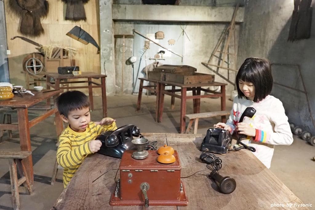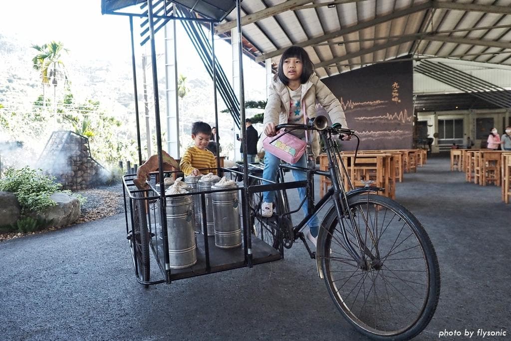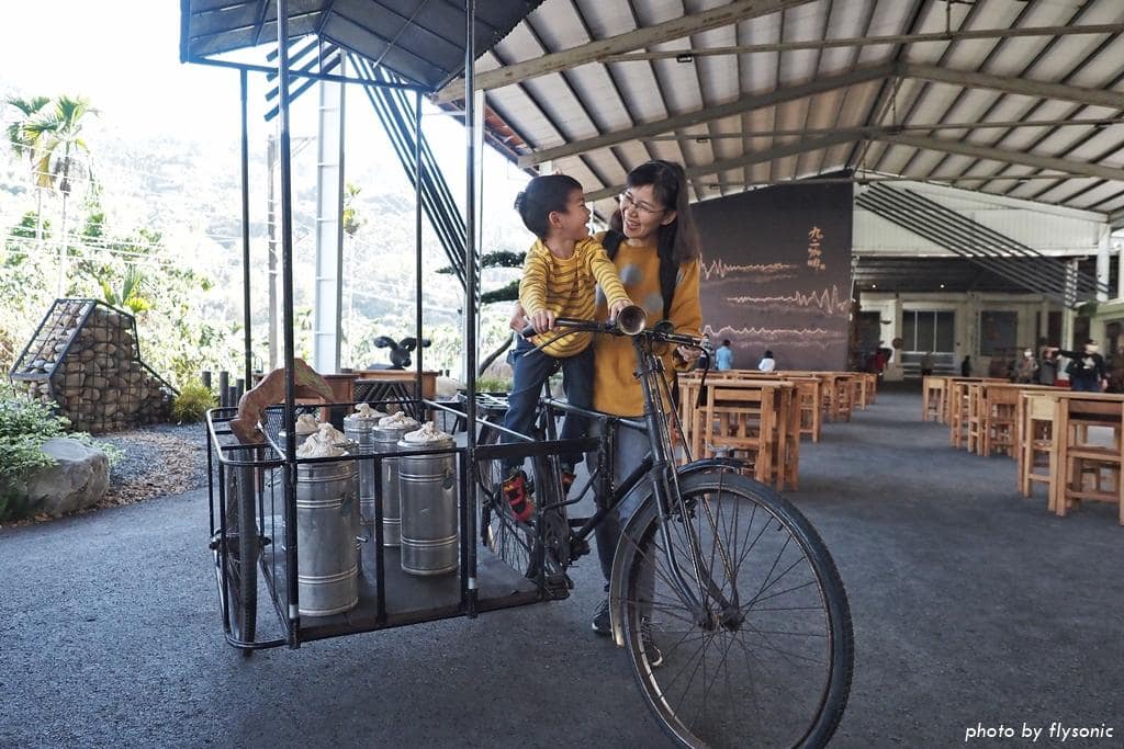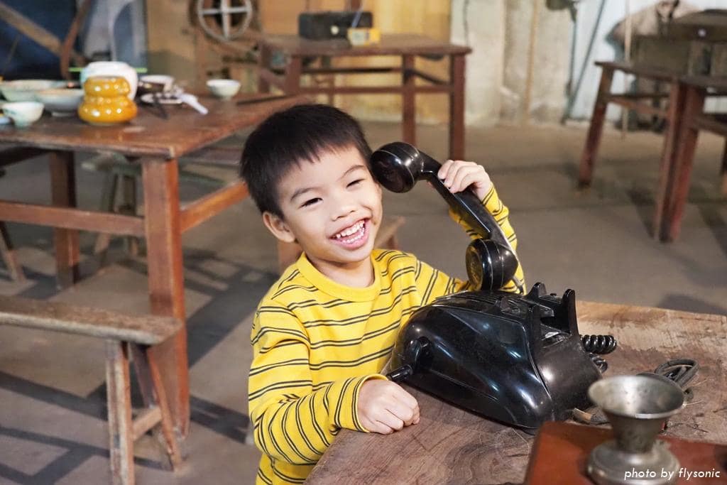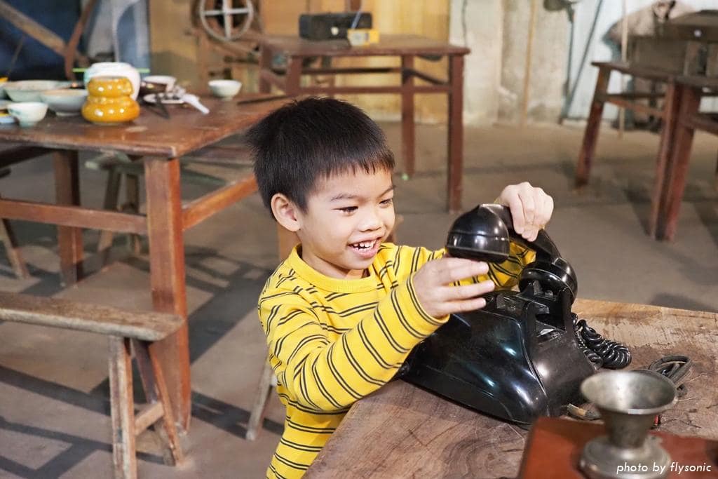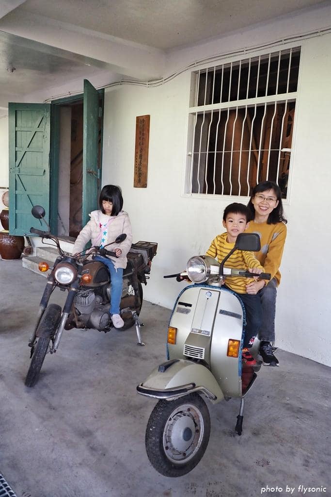 偌大的廣場放置幾輛早期的三輪車、農車供遊客拍照,現場許多小男生都很感興趣,我家兒子也不例外。