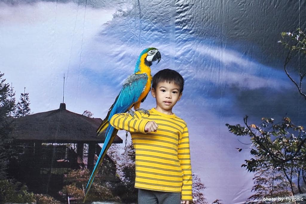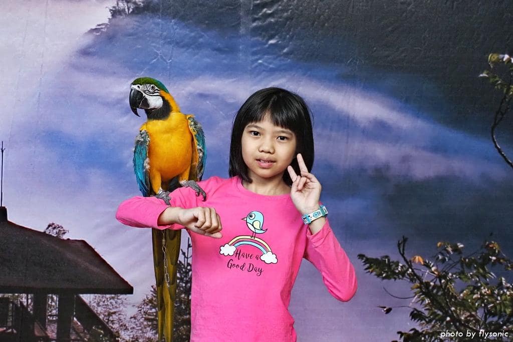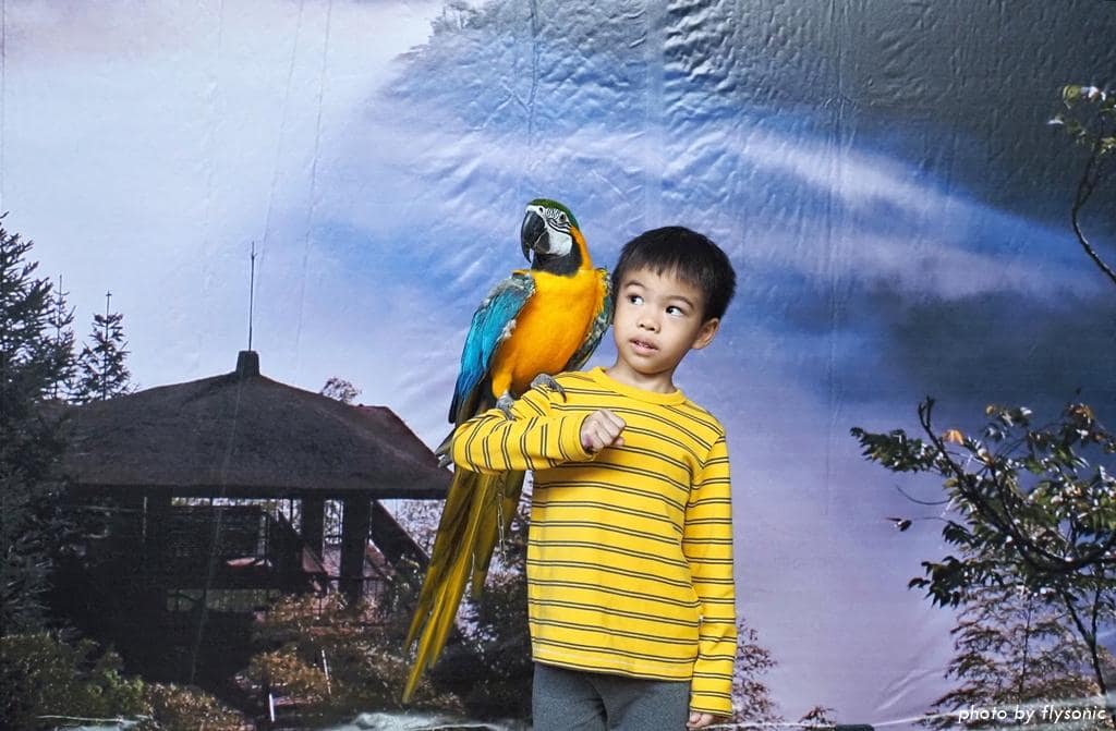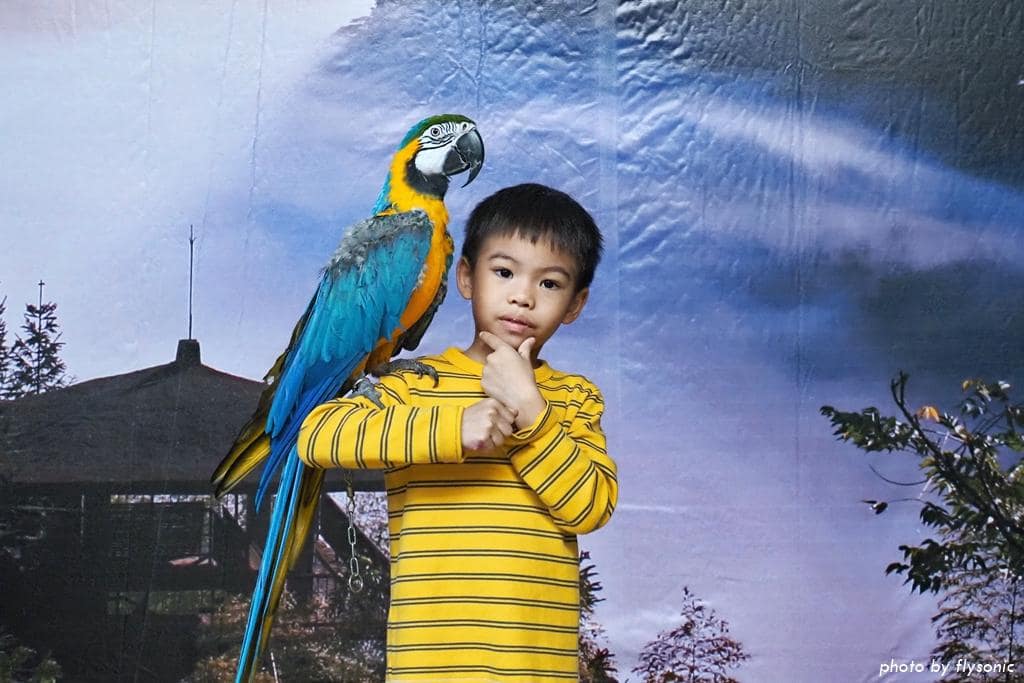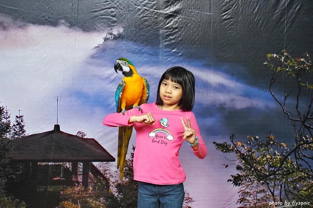 跟金剛鸚鵡拍照完,導覽就正式結束,我們繼續往上去孔雀園參觀。
