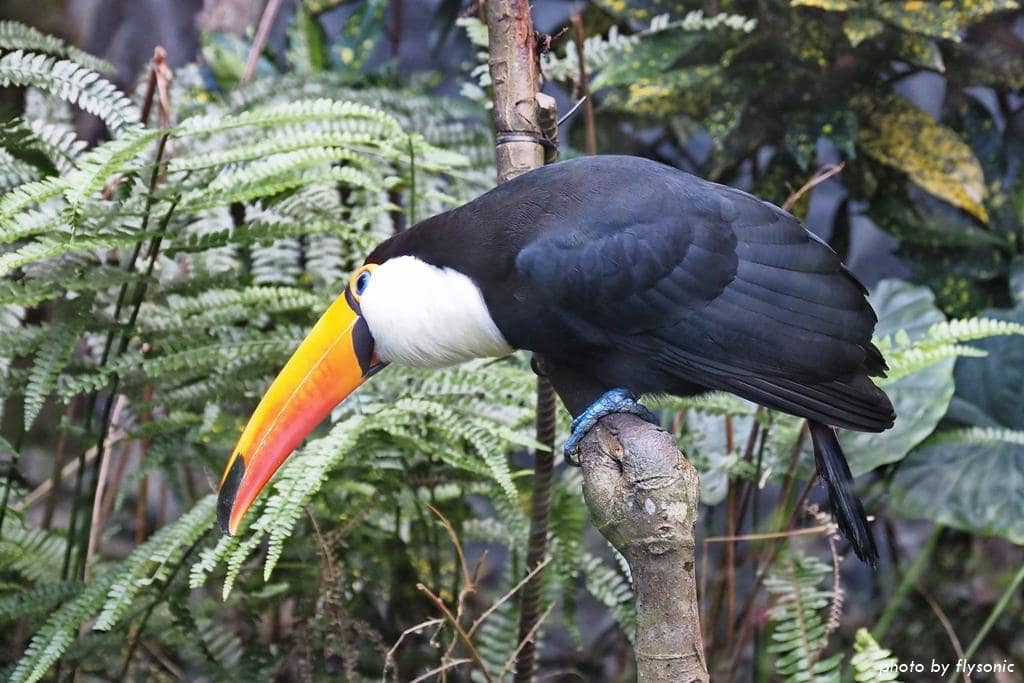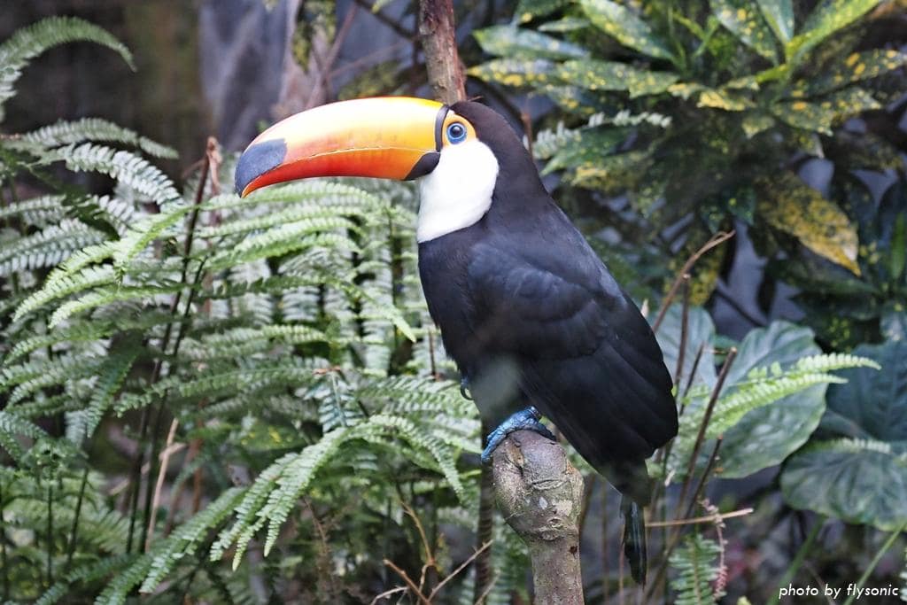 導覽員說大嘴鳥公的母的長相接近,他們的嘴巴很大,但其實是中空的,所以重量很輕,進食的方式就是先咬住食物,往空中一拋,然在再吞下去,非常特別。