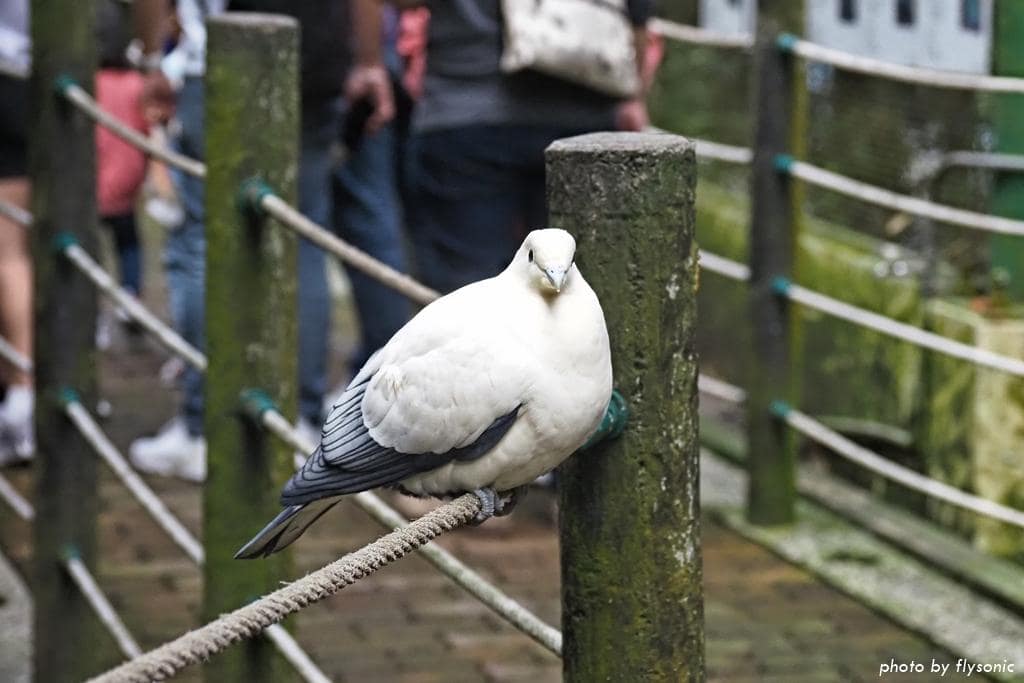 這隻白皇鳩居然就站在走道旁的欄杆上,好像在歡迎我們。